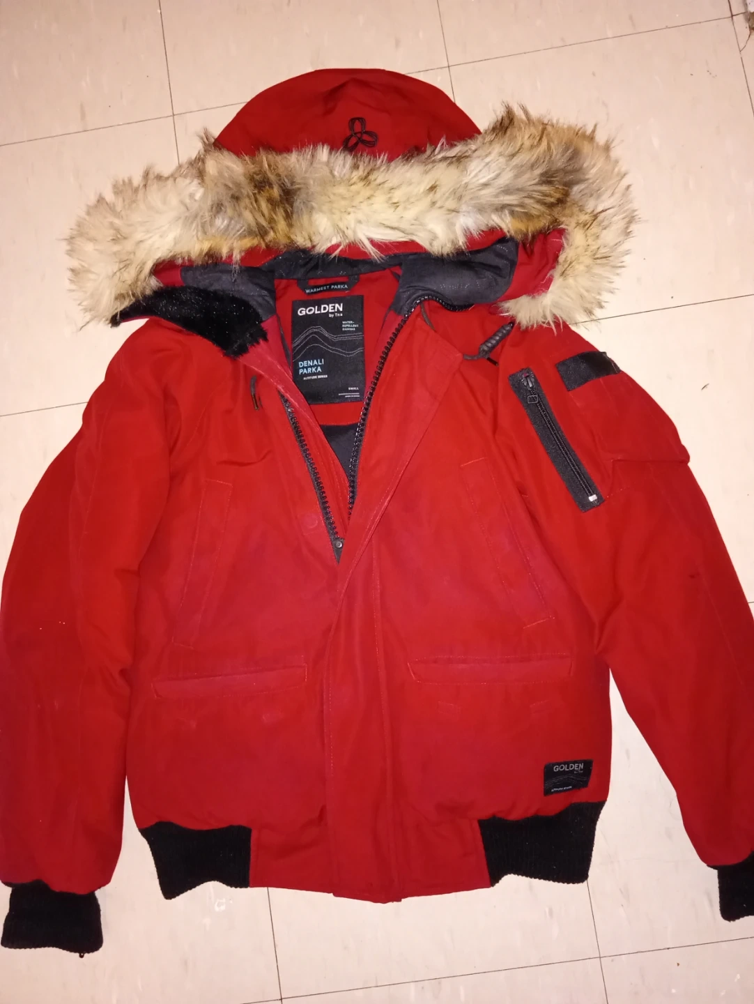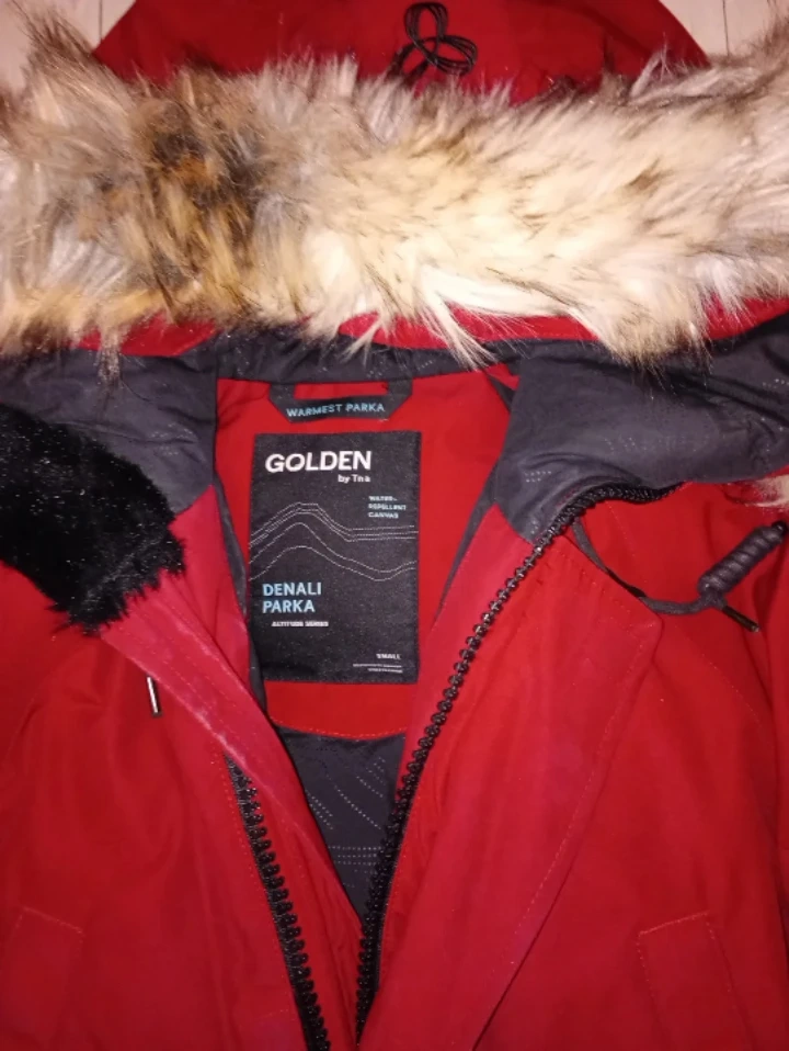 Selling a Golden by TNA Denali Parka in size small! It's a vibrant red colour and has a warm fur-trimmed hood. Perfect for staying cozy during the colder months!