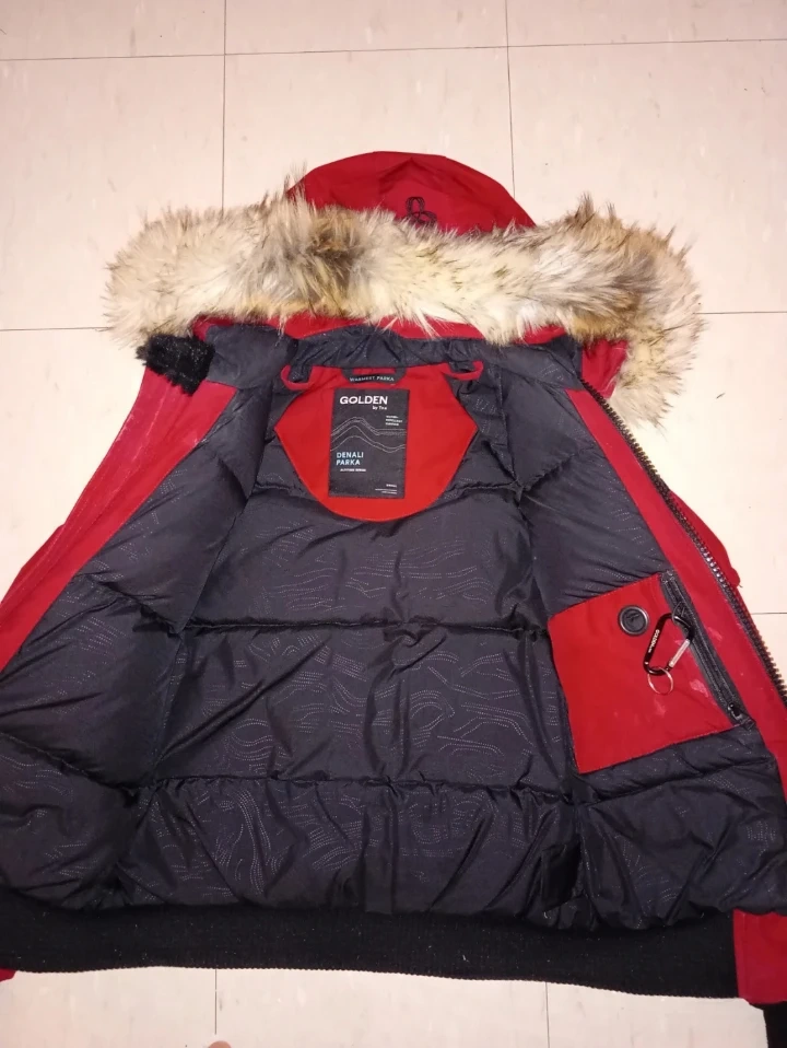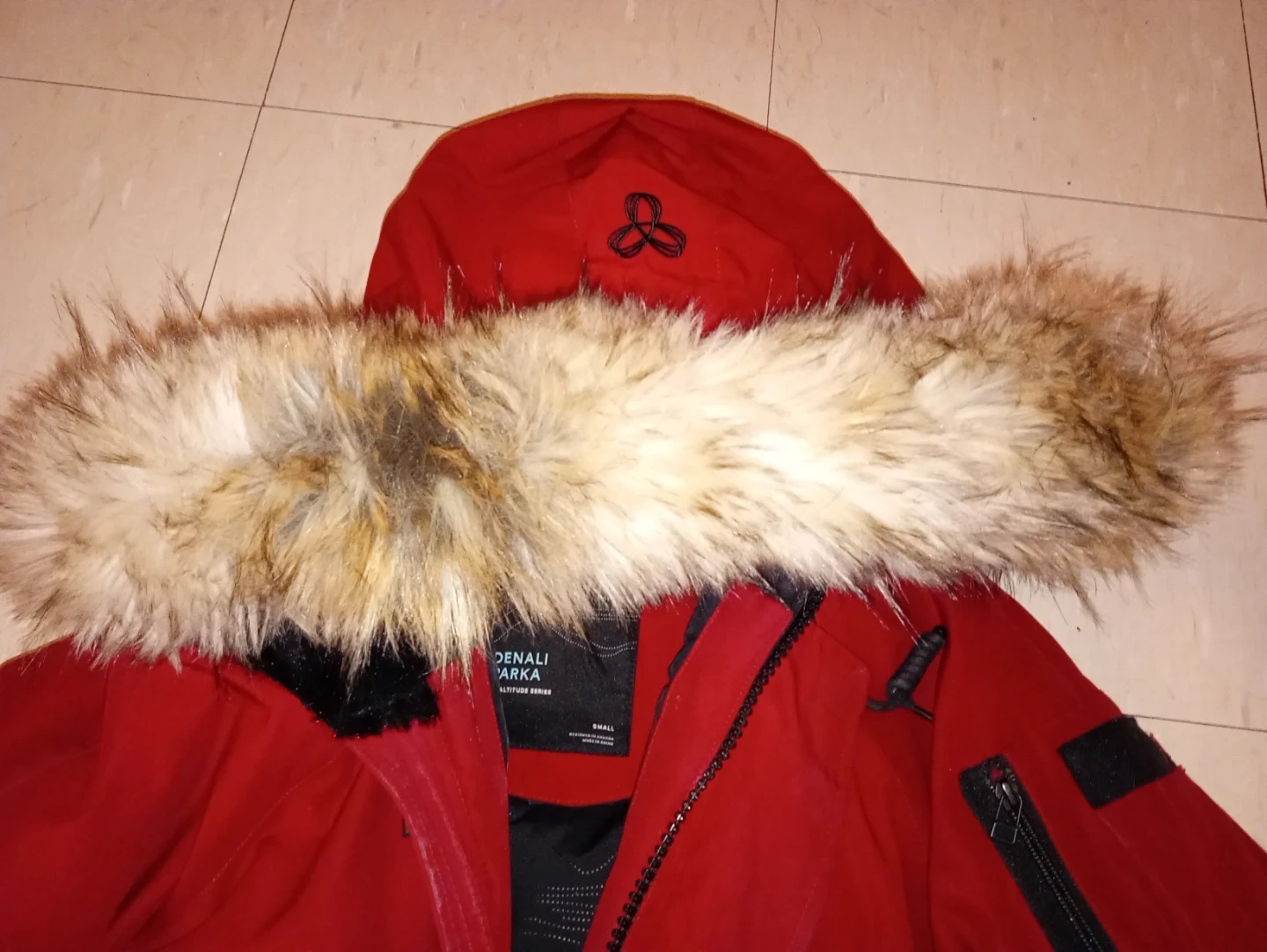 Selling a Golden by TNA Denali Parka in size small! It's a vibrant red colour and has a warm fur-trimmed hood. Perfect for staying cozy during the colder months!