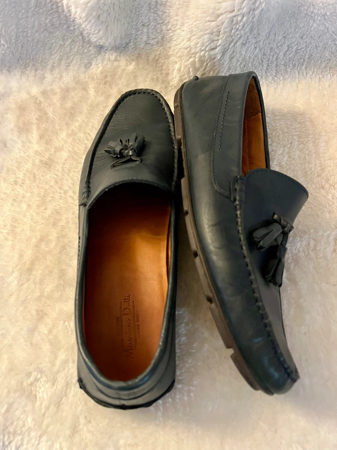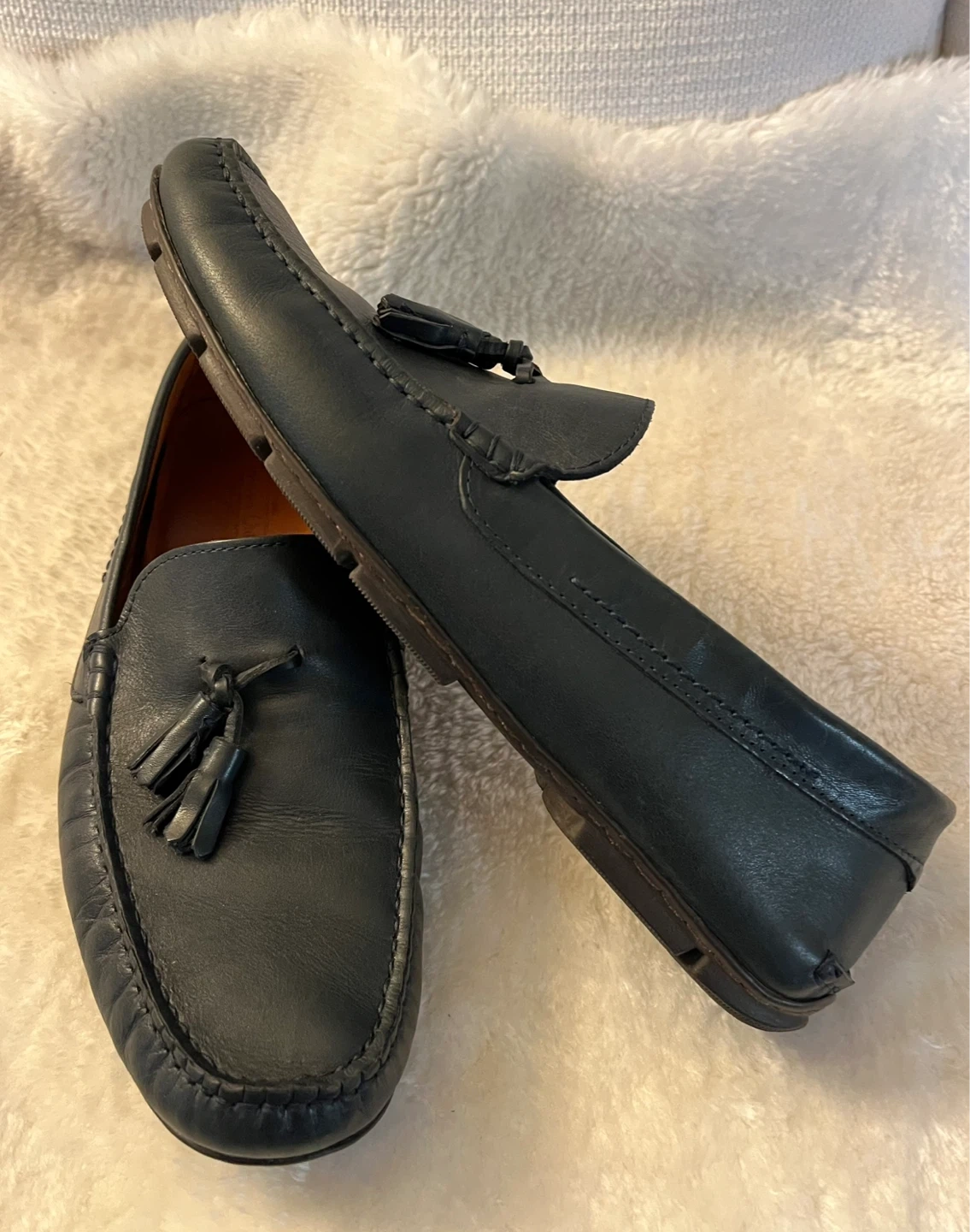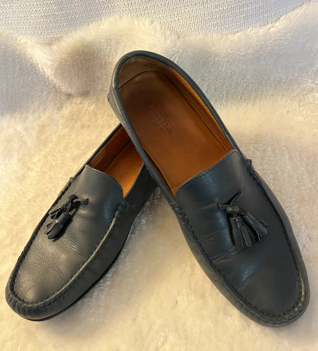 Massimo Dutti Navy Blue Leather Tassel Loafers Size 10.5