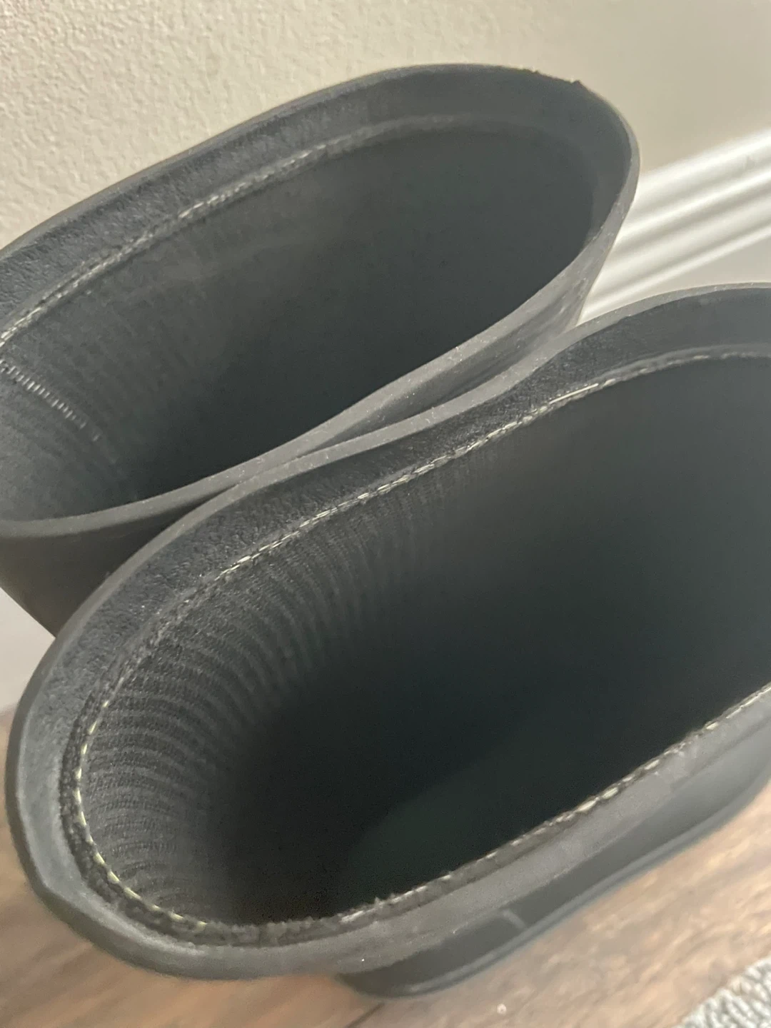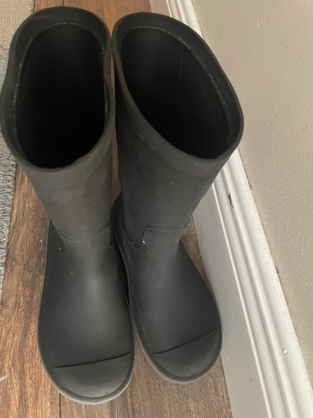 Kamik black rubber rain boots. Kids Size 1. Waterproof material. These boots are great for rainy or muddy days!