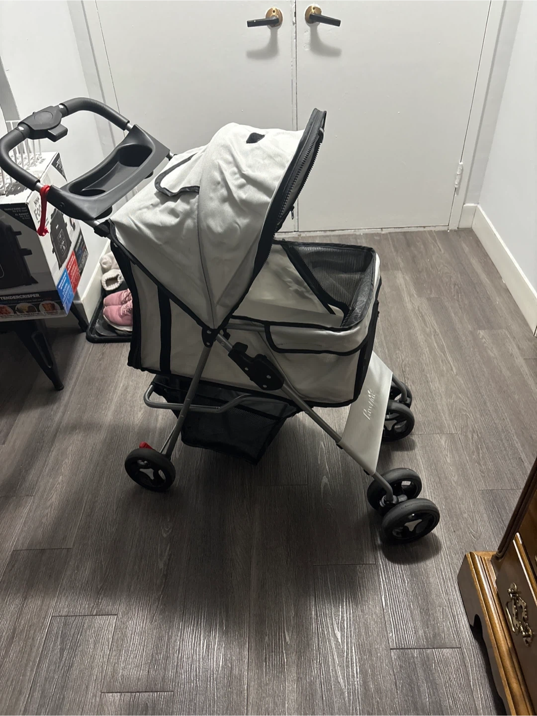 Buy & SellPawHut Pet StrollerPawHut Pet Stroller$90Light grey PawHut pet stroller. It has mesh windows for ventilation and a storage basket underneath. Your furry friend can ride comfortably on walks!ConditionNewWHERE TO MEETCheck LocationView MapSELLERverifiedKananKingsview Village872 reviews0 chats·0 favorites·5 viewsSEND CHAT TO SELLERHi Kanan! I’m interested in your listing.Hi Kanan! I’m interested in your listing.Get the Karrot app to chatSign In to chat