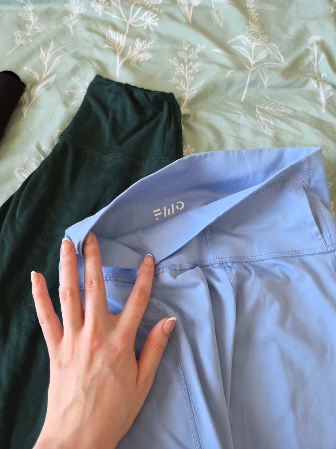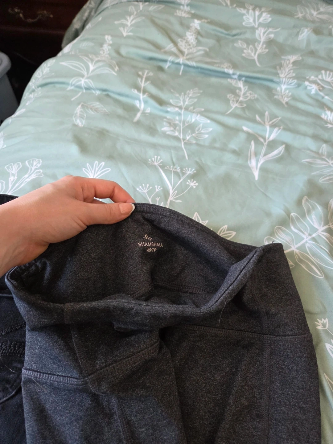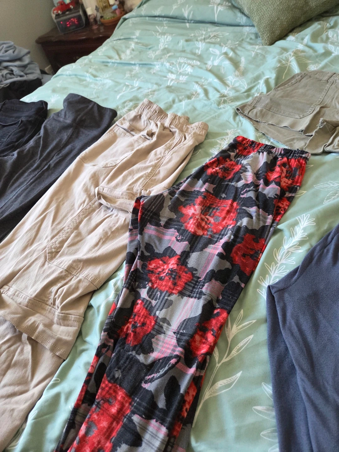 Bundle includes various athletic leggings, dress pants, shorts and lounge wear in different colours and patterns. Brands and sizes vary.