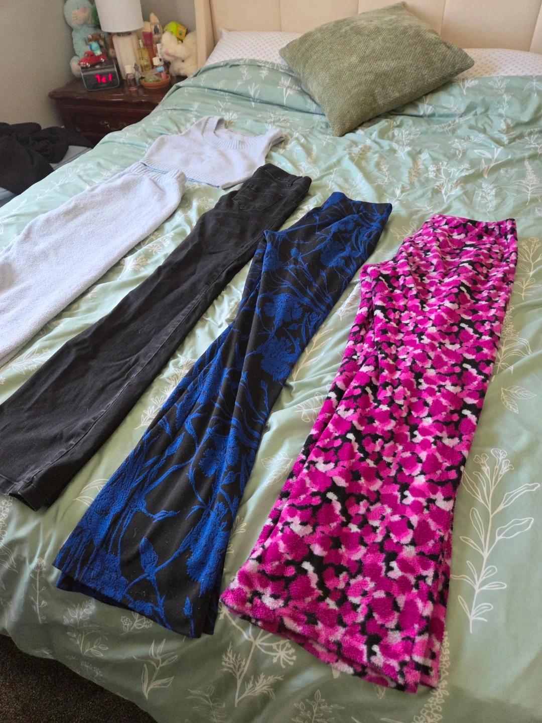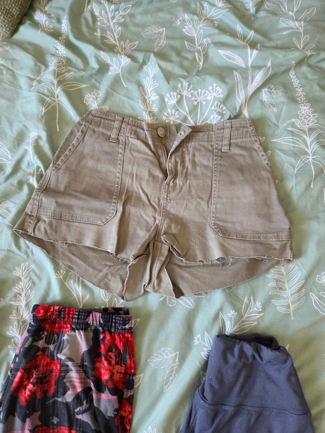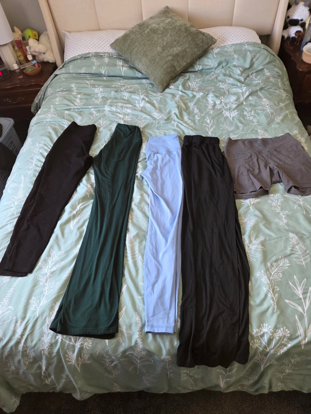 Bundle includes various athletic leggings, dress pants, shorts and lounge wear in different colours and patterns. Brands and sizes vary.