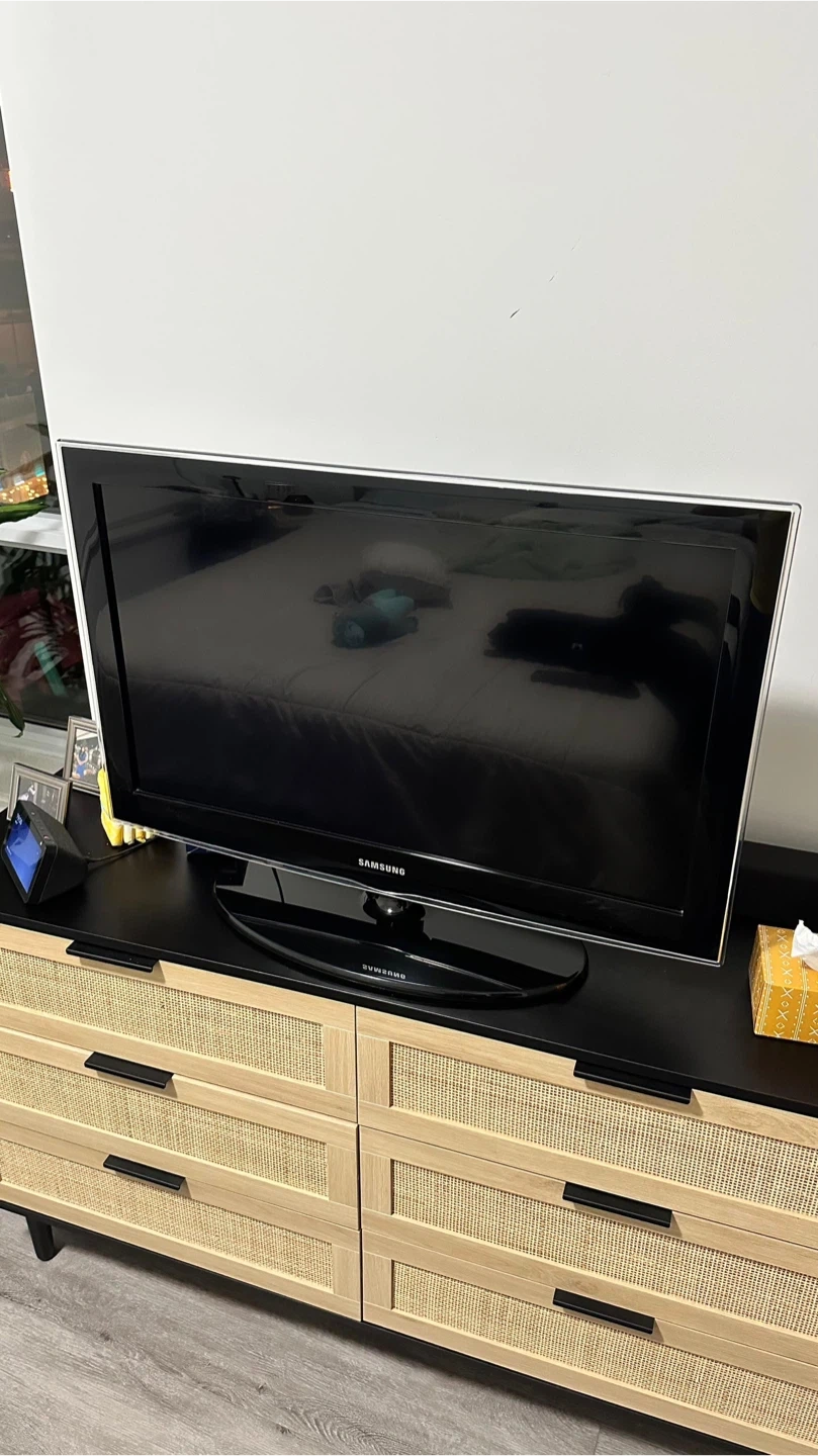 Samsung 32 inch flat screen television. This TV has HDMI, PC/DVI audio in, component in, and AV inputs. It's a great size for a bedroom or a smaller living room: