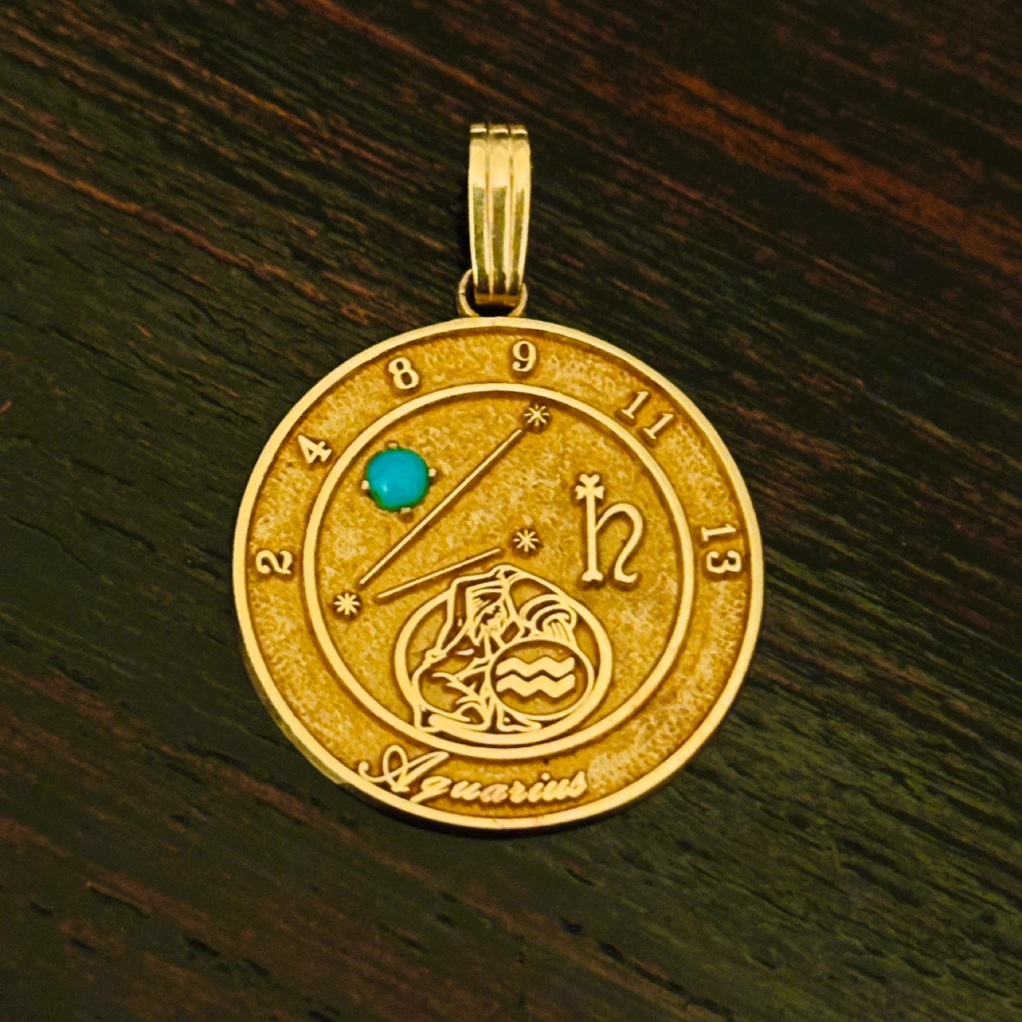 14K Gold Aquarius Zodiac Pendant by Roberts & Belk R&B
