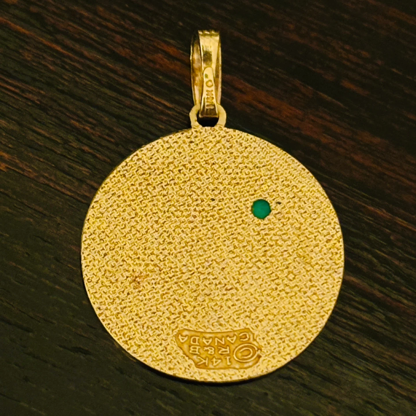 A vintage 14K gold pendant featuring the Aquarius zodiac sign. It's set with a brilliant turquoise stone. This piece is marked 14K and made in Canada. It's a great find for astrology enthusiasts and the perfect gift! Just under 2.5g.