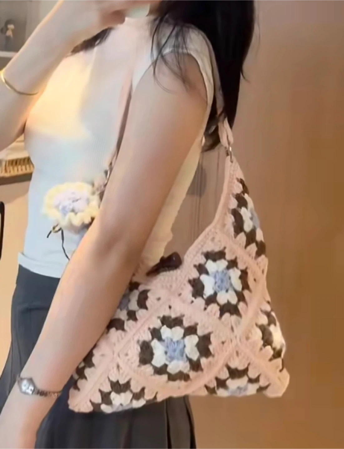 Handmade Granny Square Crochet Shoulder Bag (Customizable)