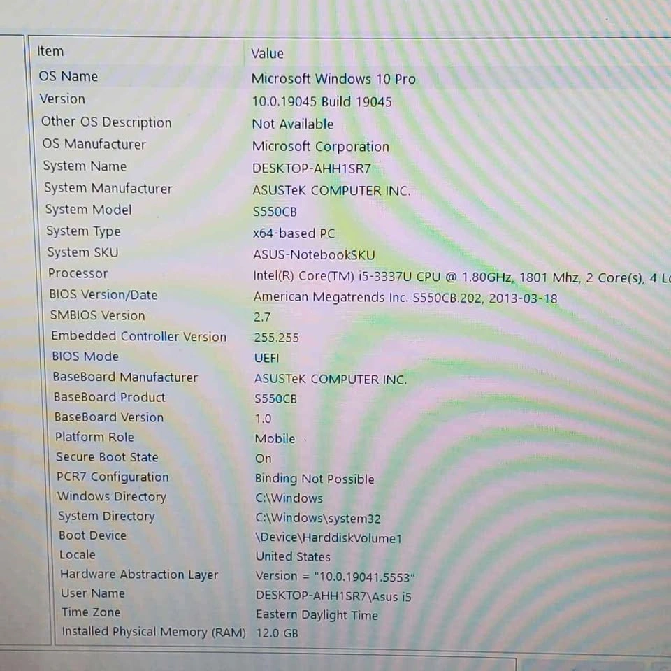 This Asus S550CB laptop features an Intel Core i5-3337U processor, 12GB of RAM, and an NVIDIA GeForce 740M graphics card. The screen size is 15.6 inches, providing a comfortable viewing experience.