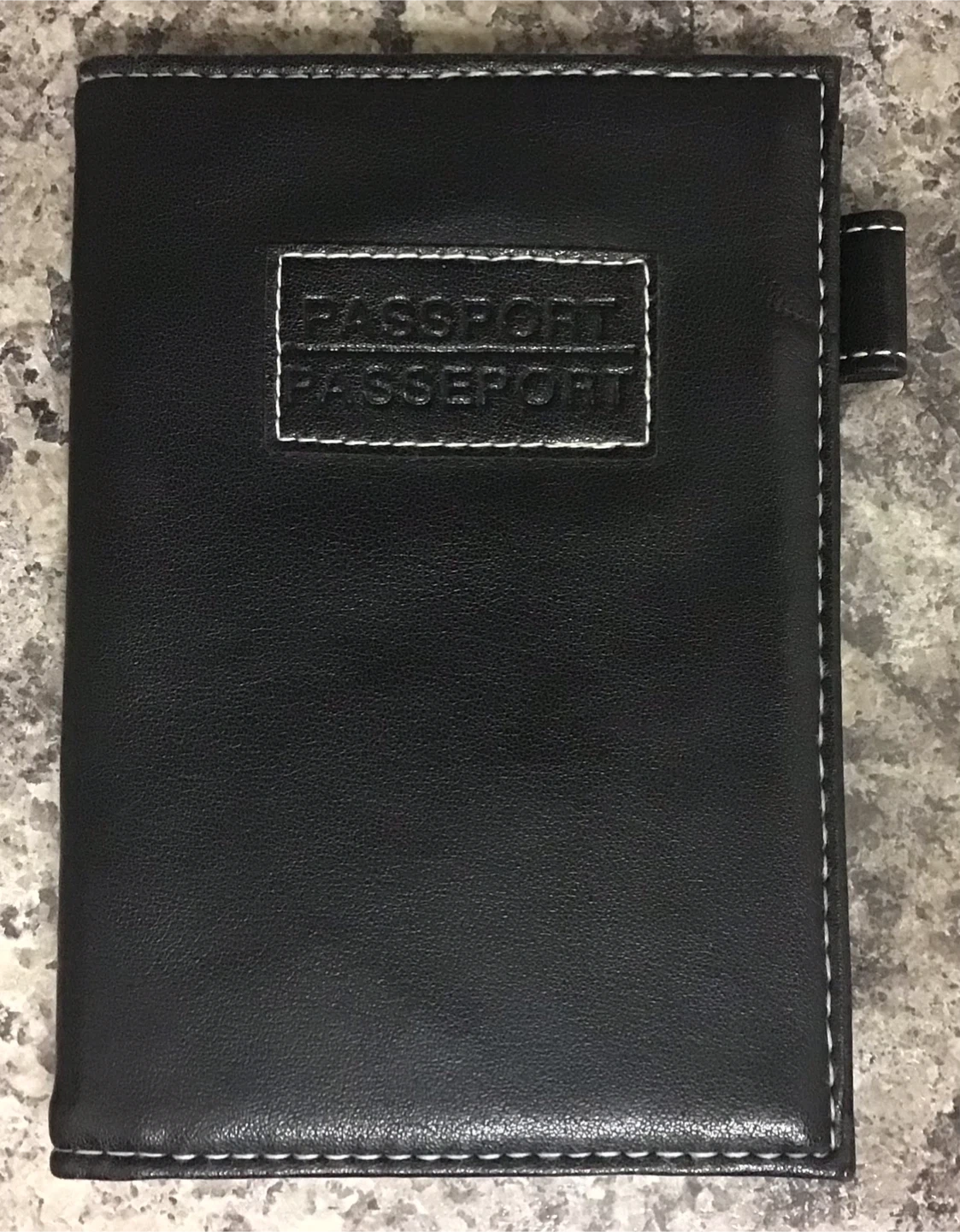 Selling a black passport holder. It's in good shape and ready for your next trip! It has some pockets inside for your cards and documents. It’s perfect for keeping everything organized while you travel.
