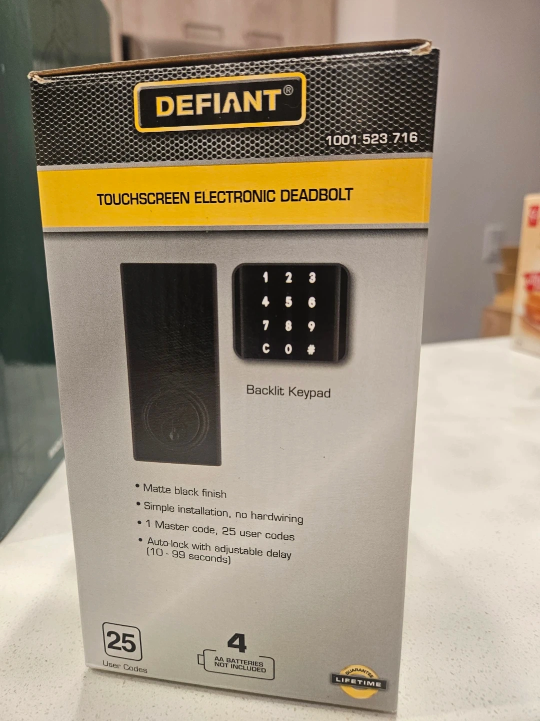 Selling a brand new (box was opened) Defiant Touchscreen Electronic Deadbolt! It features a backlit keypad and a matte black finish. It also offers simple installation with no hardwiring. It has 1 master code and 25 user codes. It also has an auto-lock feature with adjustable delay (10-99 seconds).