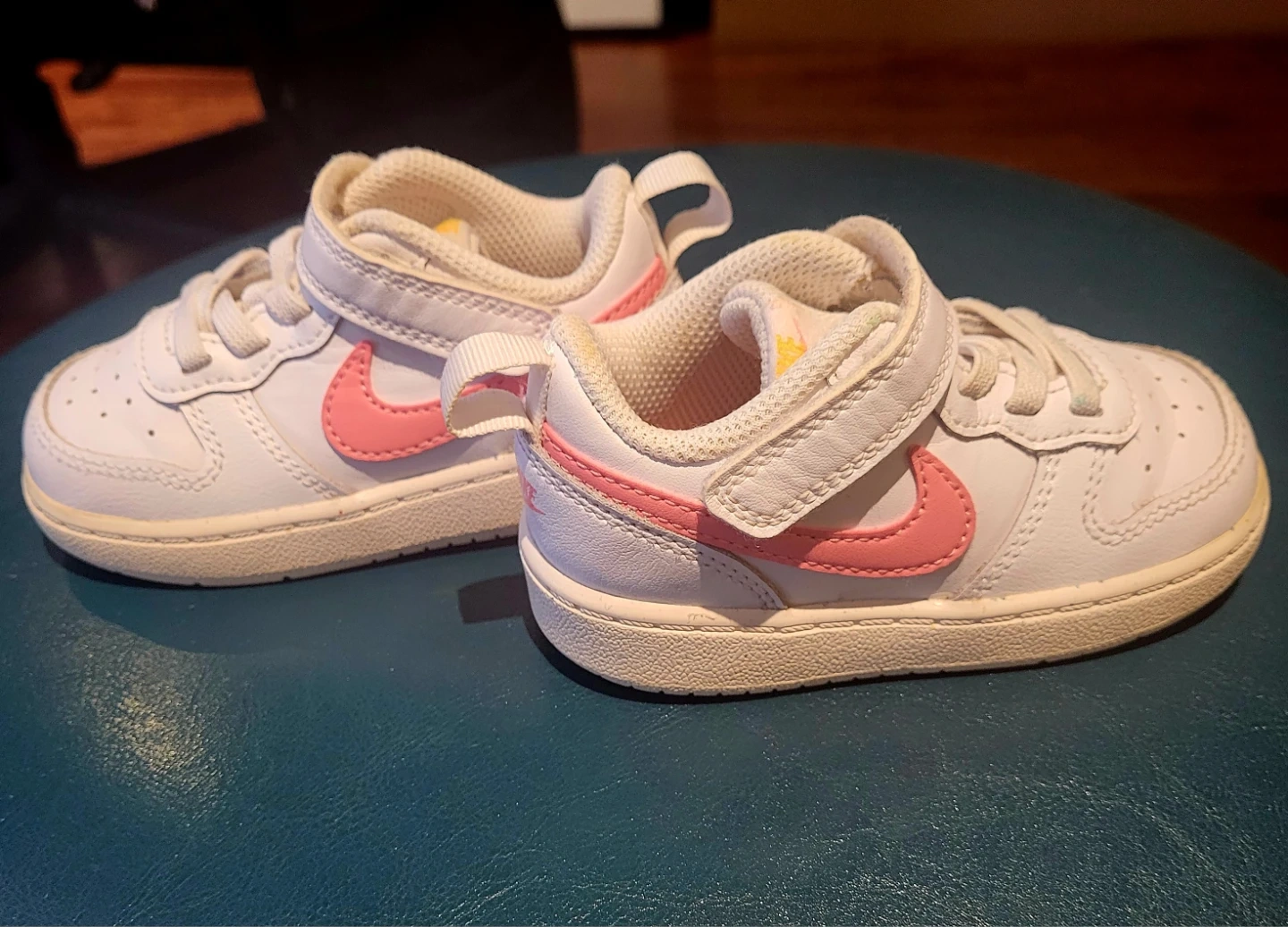 These adorable Nike Court Borough Low 2 toddler sneakers are in very good condition! They feature a classic white design with a pop of pink on the swoosh and heel. Perfect for your little one's everyday adventures. Size 6C