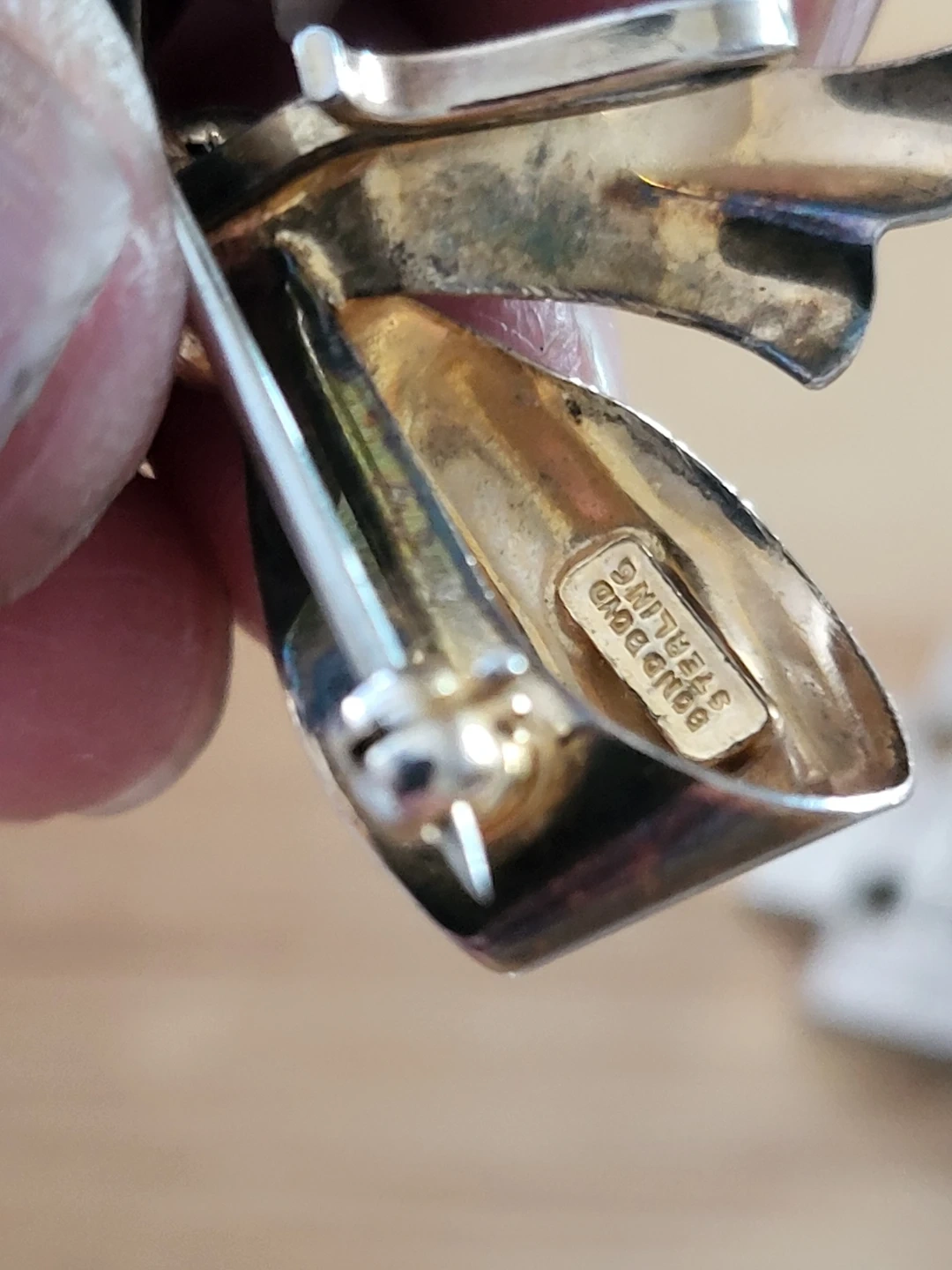 A collection of five vintage brooches and one pendant. ALL pieces marked Sterling or 925 some featuring mother-of-pearl inlay. The total weight of the brooches and pendant is 19 grams.