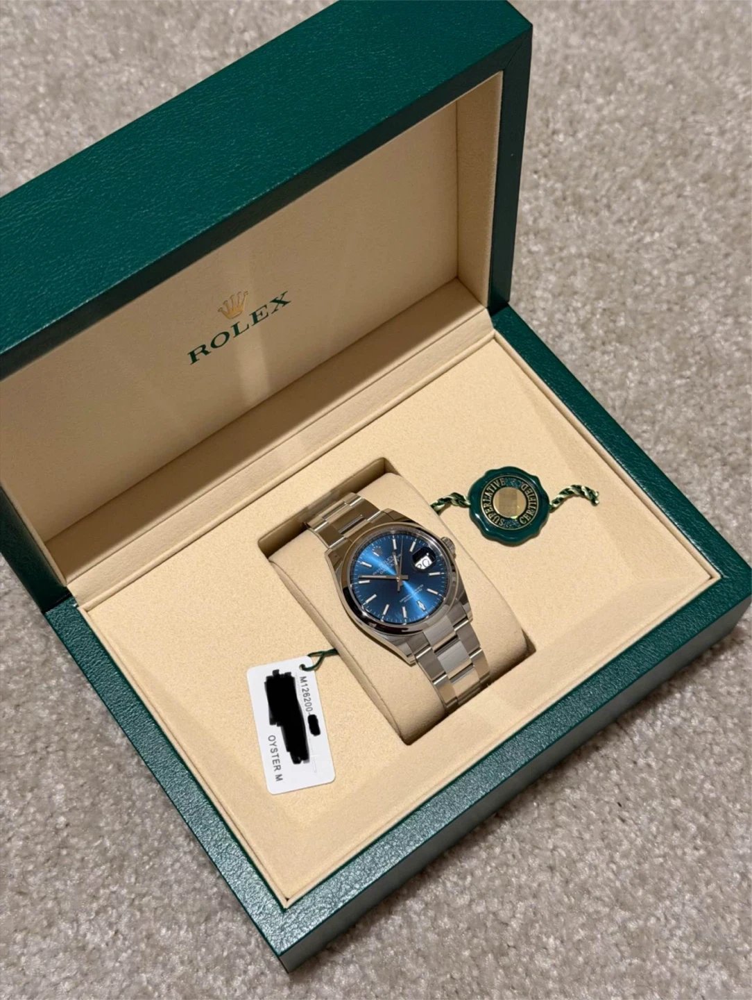 Selling a Rolex Oyster Perpetual Datejust watch. It's in great condition and features a stainless steel band. A timeless piece!