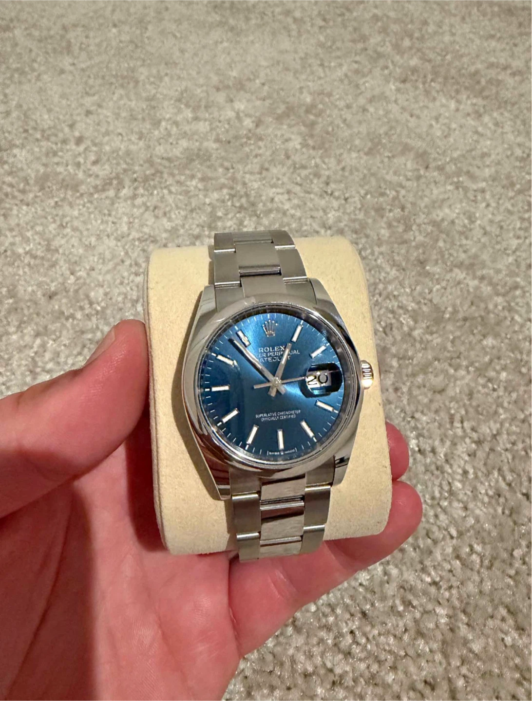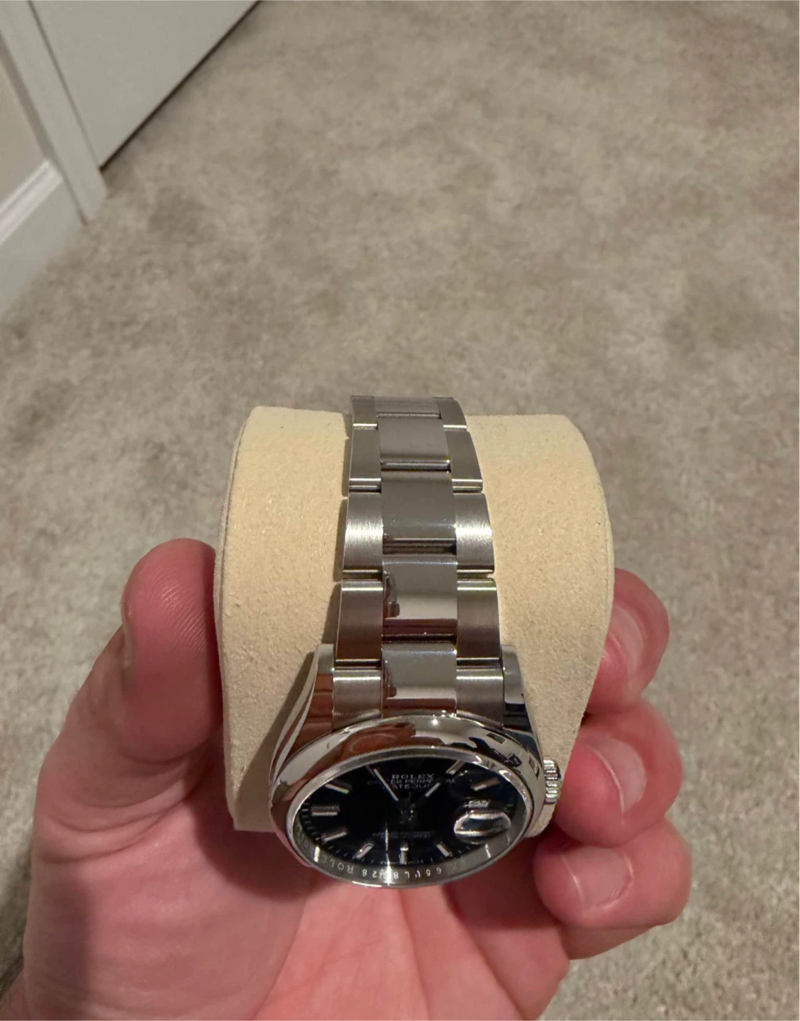 Selling a Rolex Oyster Perpetual Datejust watch. It's in great condition and features a stainless steel band. A timeless piece!