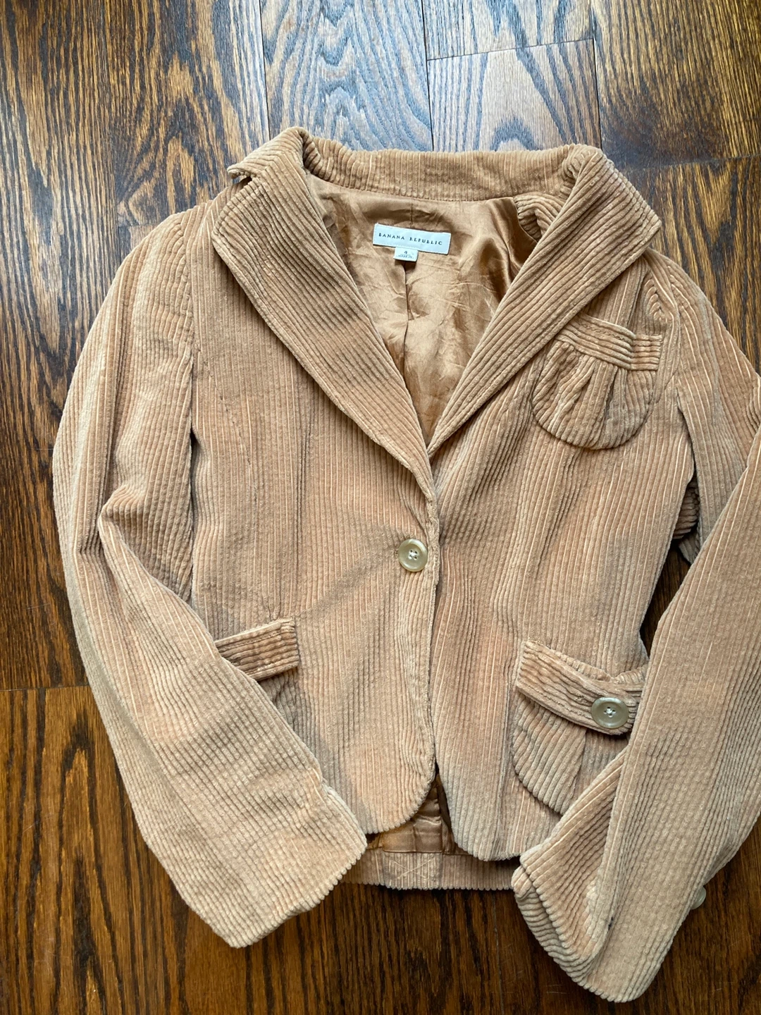 - Banana Republic light brown corduroy cropped length jacket with buttons