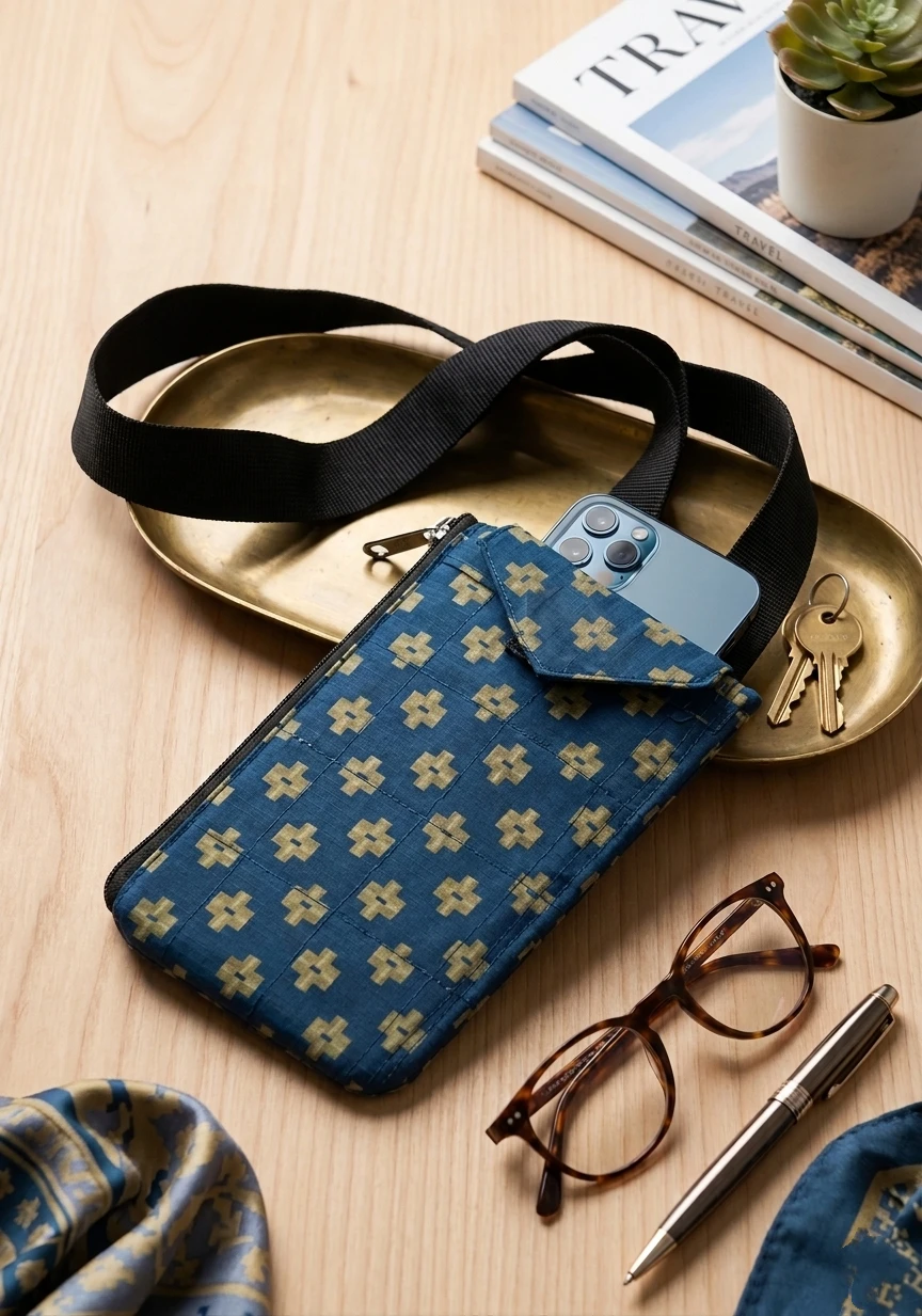 Earthy Textiles Phone Pouch with Strap