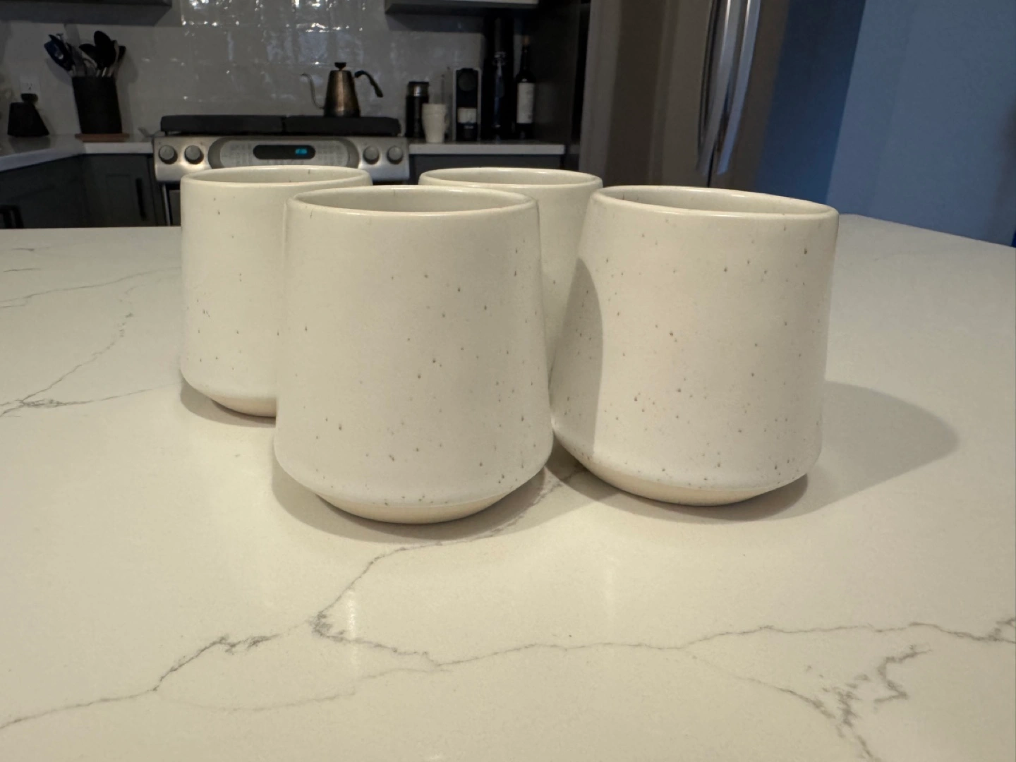 Selling a set of four Fable cups. These mugs are in great condition. Semi-matte in the colour Speckled White. Perfect for enjoying your morning coffee or tea! Originally priced at $79 before tax.