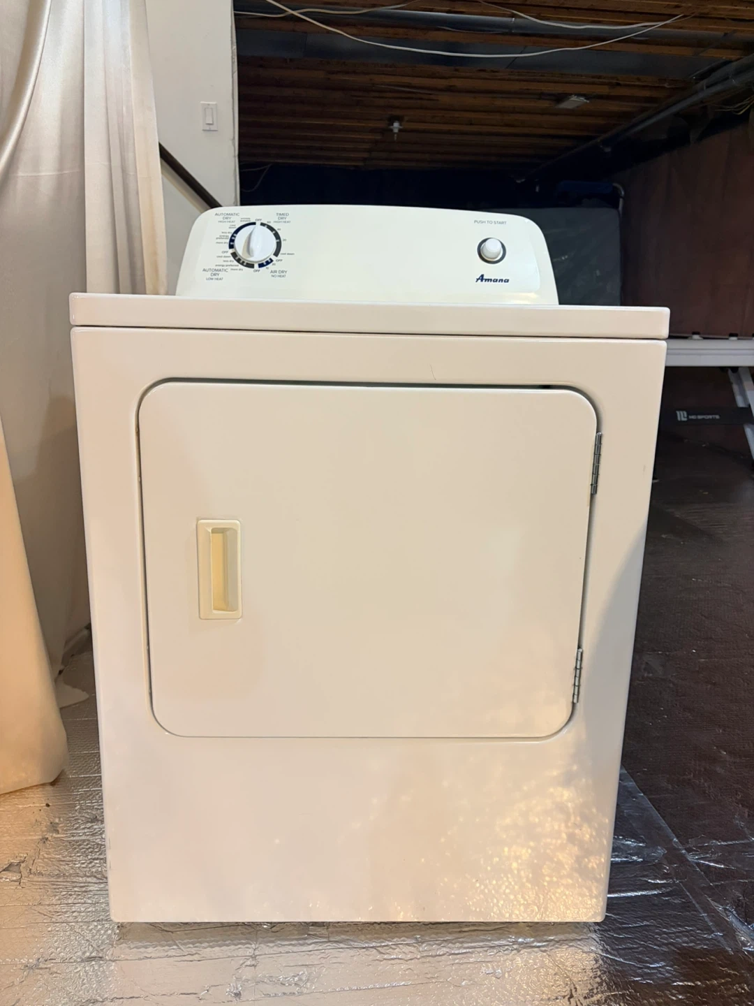 Selling a fully working Amana electric dryer in great condition. Runs smoothly, heats properly, and dries clothes with no issues. Interior is clean and well-kept. Great for a home, rental unit, or student setup.