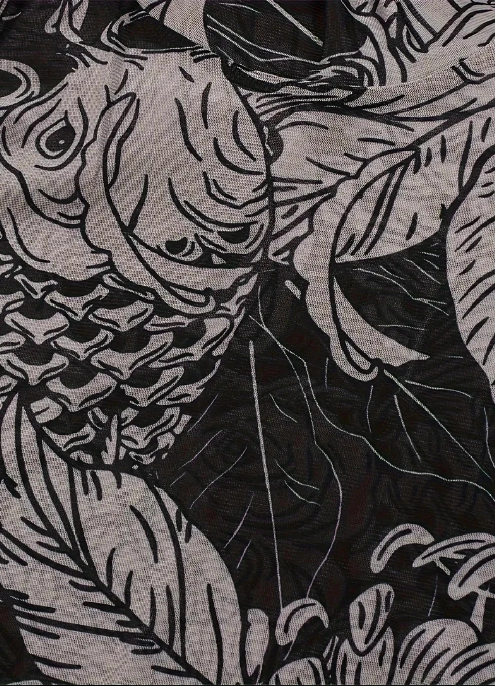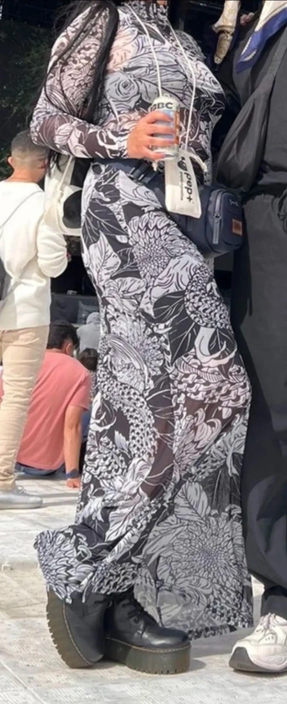 Condition: Brand New in Package (NIP) Size: Small ​Make a bold statement in this stunning floor-length maxi dress. Featuring an intricate, all-over traditional Japanese Koi fish and floral tattoo print, this piece balances edgy streetwear vibes with an elegant silhouette. ​Product Details: ​Style: Bodycon fit that hugs curves in all the right places. ​Neckline: Chic mock neck (high neck) for a polished look. ​Sleeves: Full-length long sleeves. ​Material: Soft, high-stretch jersey/mesh-style fabric (comfortable for all-day wear). ​Print: High-contrast neutral tones (tan/black) that pair easily with platform boots or heels.
