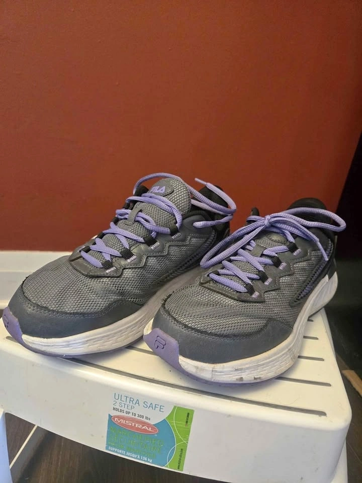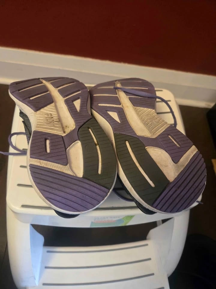 1- Men's Sneakers in grey and purple. Used but still in good condition. Size 8.