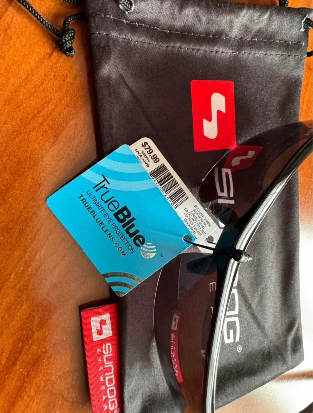 Sundog Eyewear sunglasses with True Blue ultimate eye protection. Includes a black carrying pouch. These shades offer 100% UVA/UVB protection.