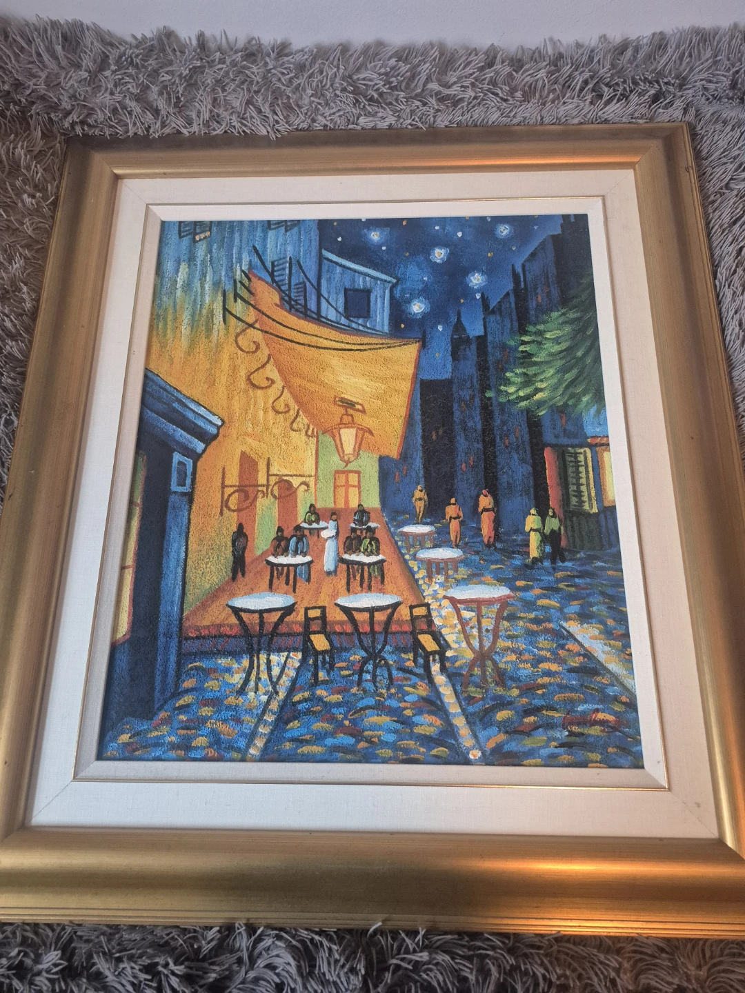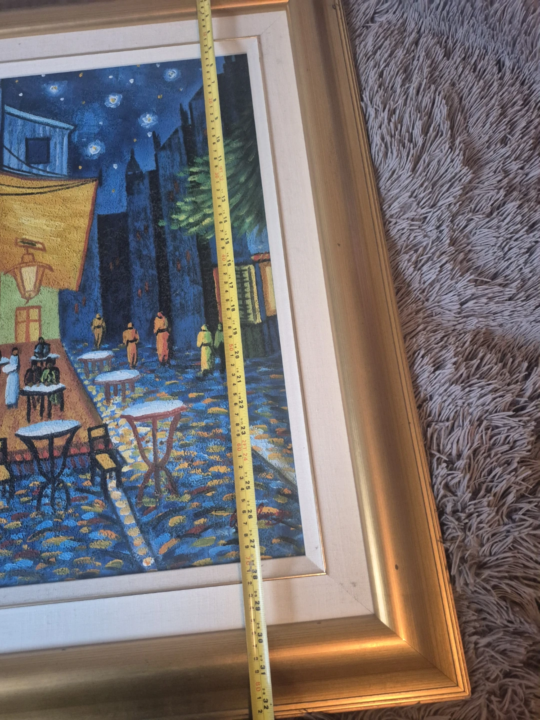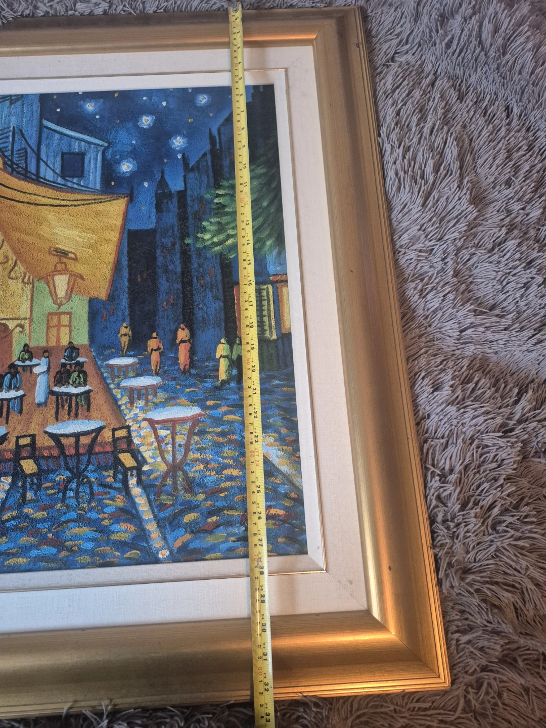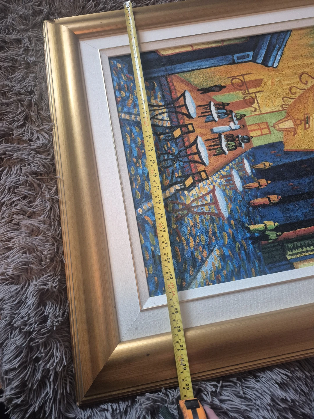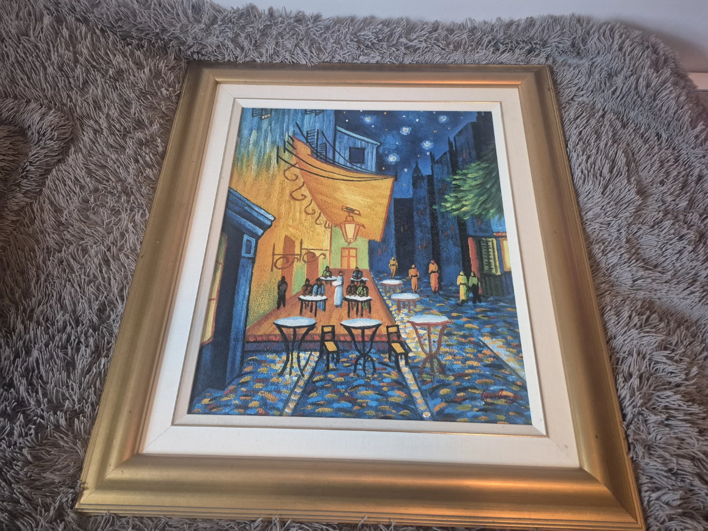 Buy & SellFramed Oil Painting of a Café SceneFramed Oil Painting of a Café Scene$23Oil on canvas painting depicting a European-style café scene at night. Painting measures 25" x 31". Comes in a gold-tone frame.WHERE TO MEETCheck LocationView MapSELLERverifiedMarzenaLakeview974 reviews0 chats·0 favorites·20 viewsSEND CHAT TO SELLERHi Marzena! I’m interested in your listing.Hi Marzena! I’m interested in your listing.Get the Karrot app to chatSign In to chat