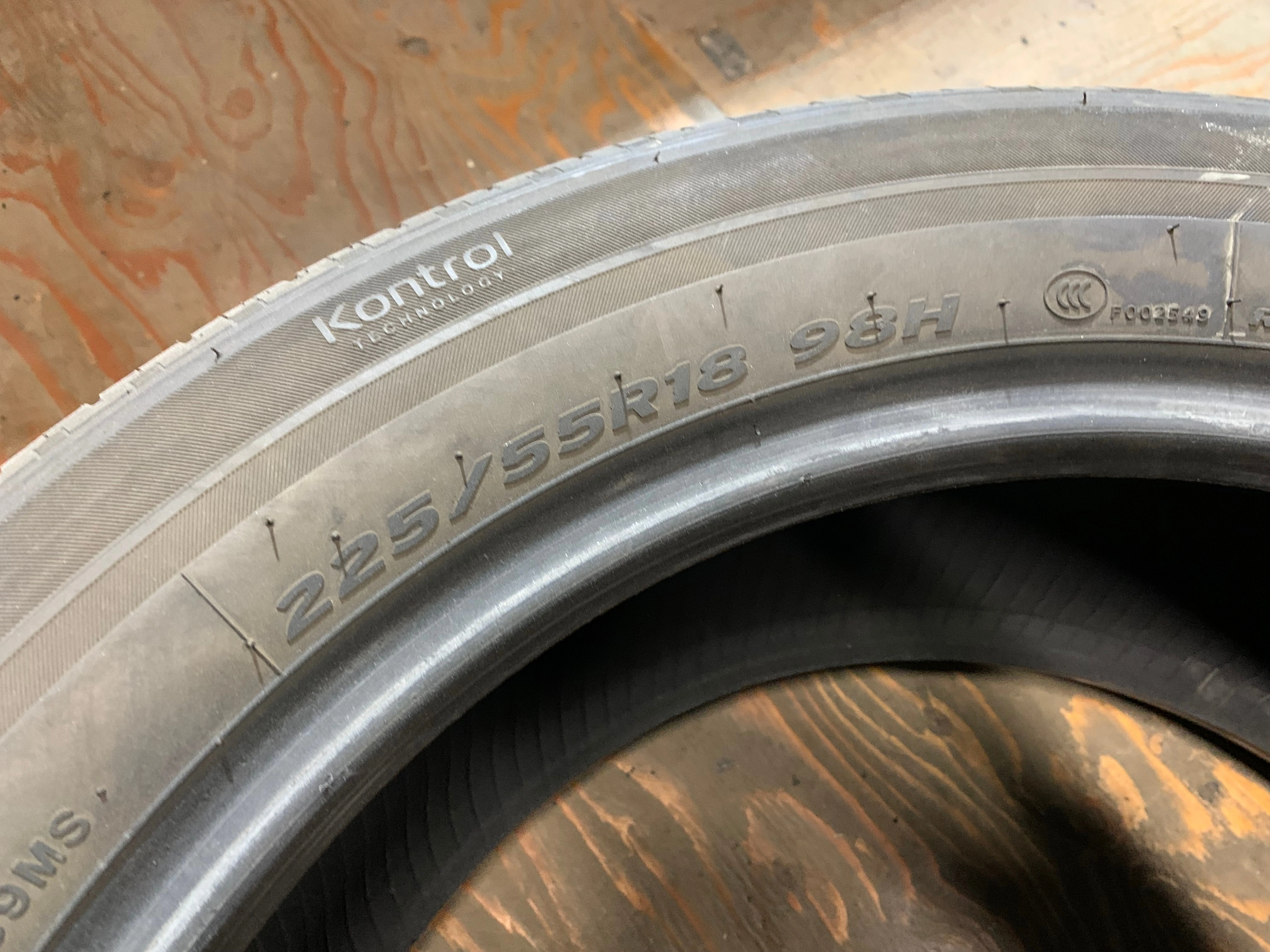 size 225/55/18 98H M+S Hankook Kinergy GT with no repairs and 90% tread