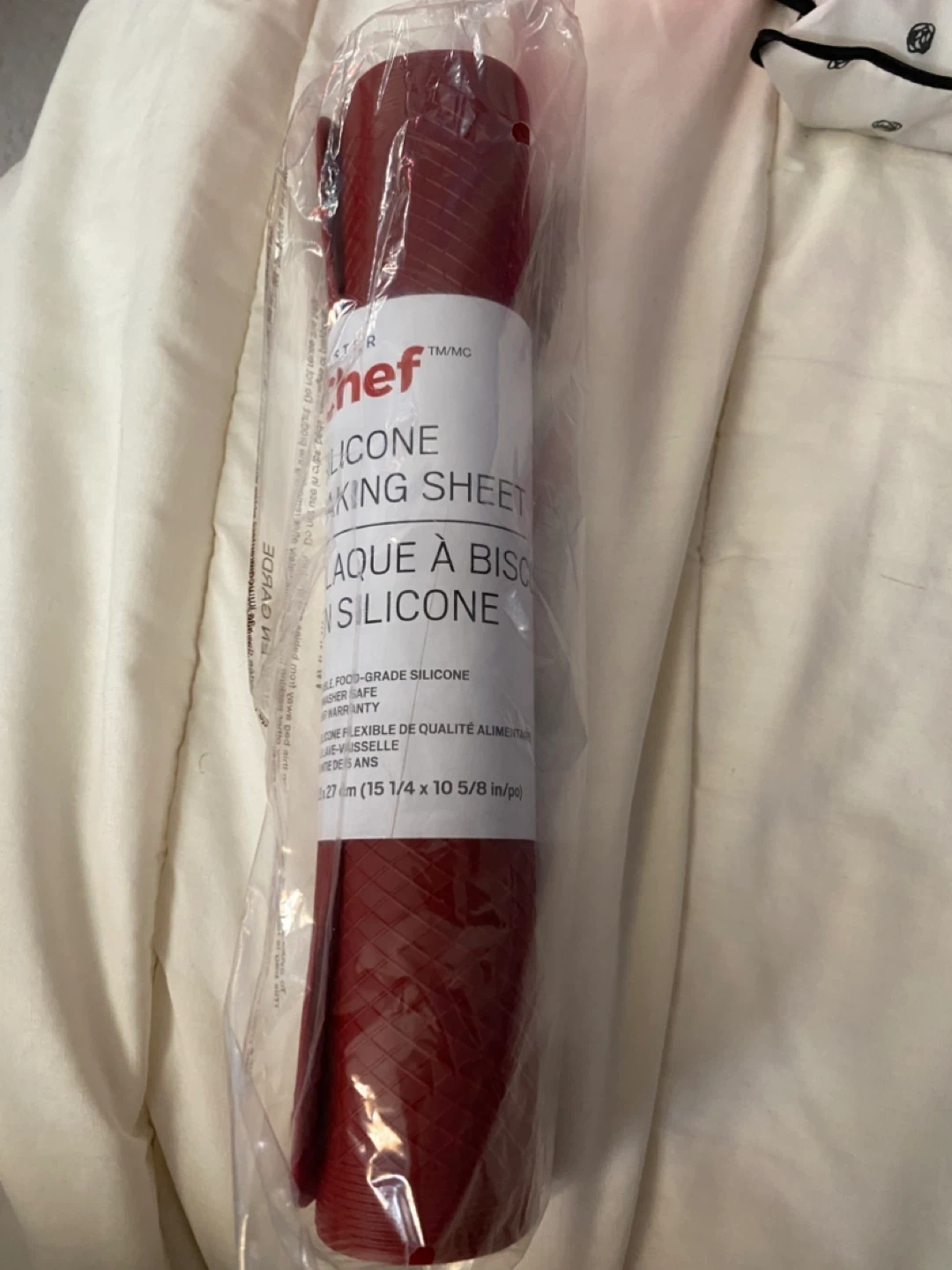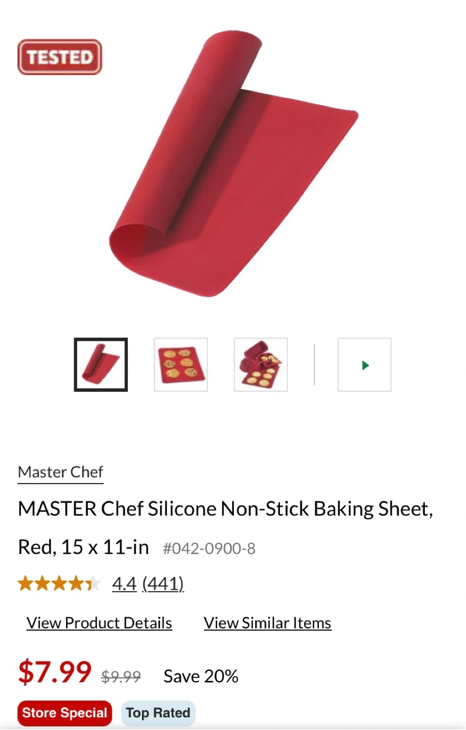 This Master Chef silicone baking sheet is non-stick. It's food-grade silicone and measures 15 x 11 inches. It's great for baking cookies and other treats!