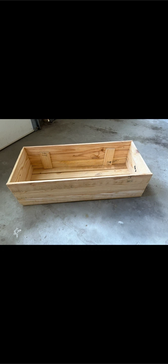 A sturdy wooden garden bed, perfect for growing veggies at your own backyard. It's made from natural wood.