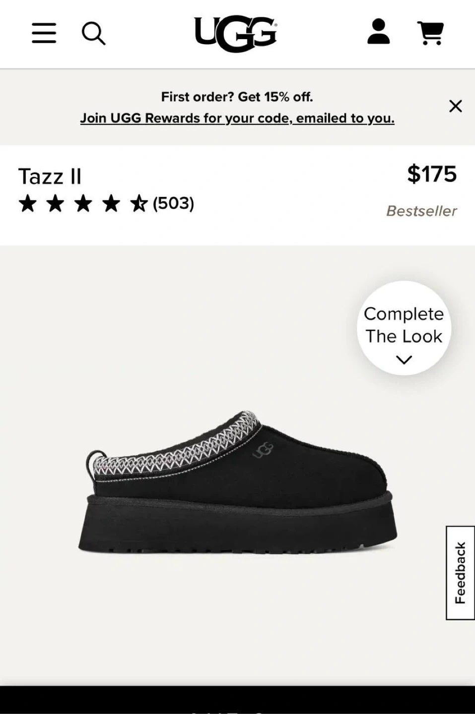UGG TAZZ 2 – Size 10 (Black)