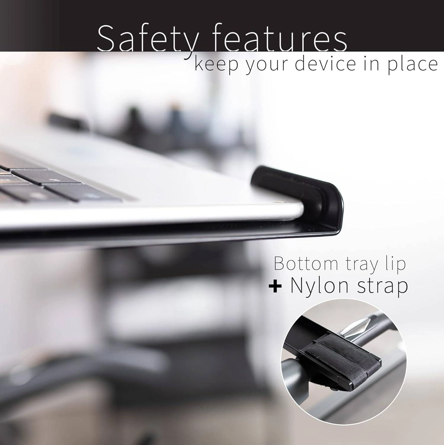 - Safety features keep your device in place, including a bottom tray lip and nylon strap