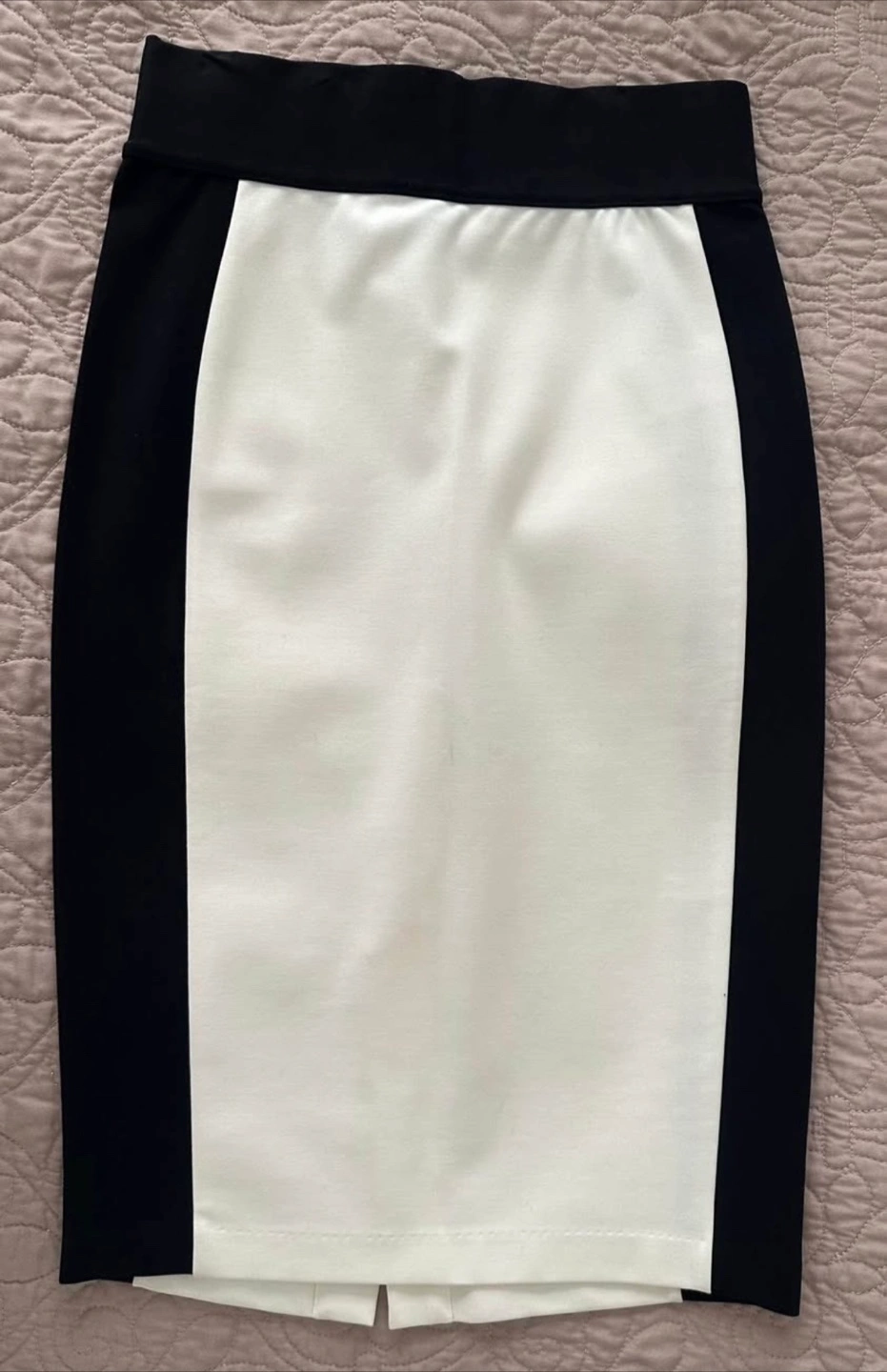 Here's a stylish Armani Exchange skirt in a classic black and white colour block design. It's a size S and in great condition! Perfect for dressing up or down, this skirt is a versatile addition to any wardrobe.