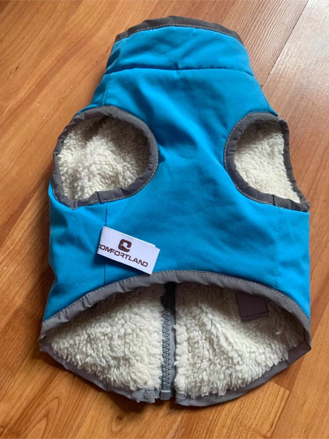 Blue cat ( DOG) vest with sherpa lining for warmth.