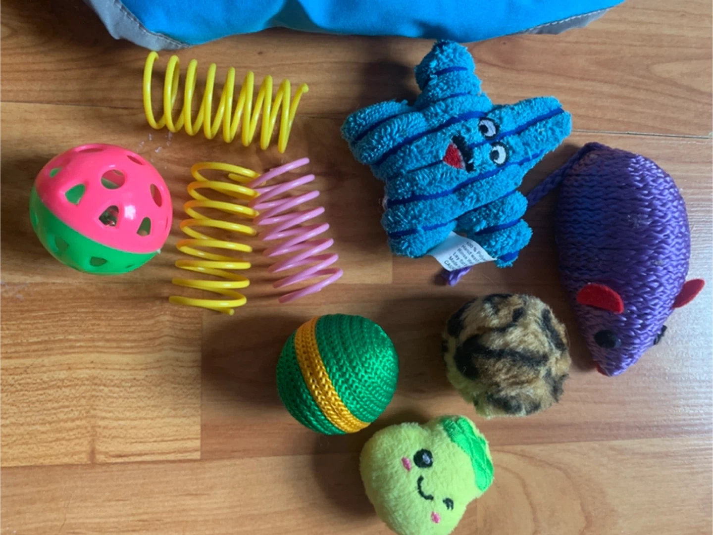 Zipper closure on the front. Comes with a variety of toys including springs, mice, and balls. Vest is made of durable material.