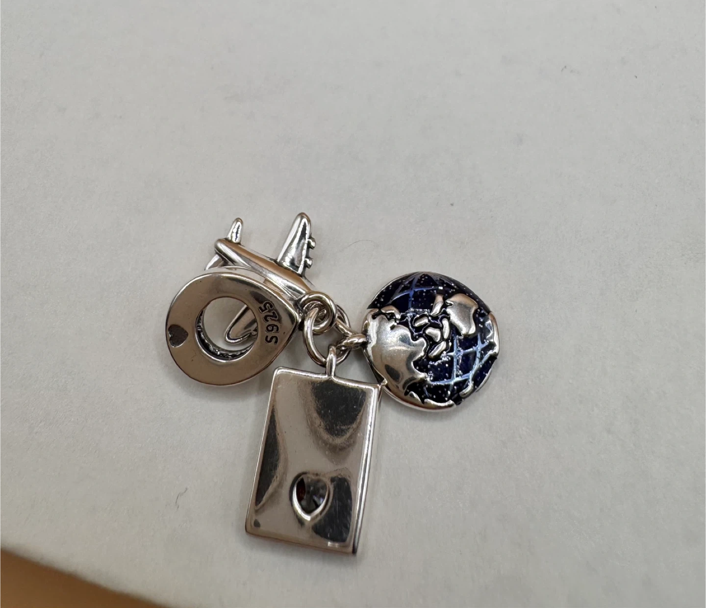 Sterling Silver 925Travel Charm - Airplane, Globe, Passport