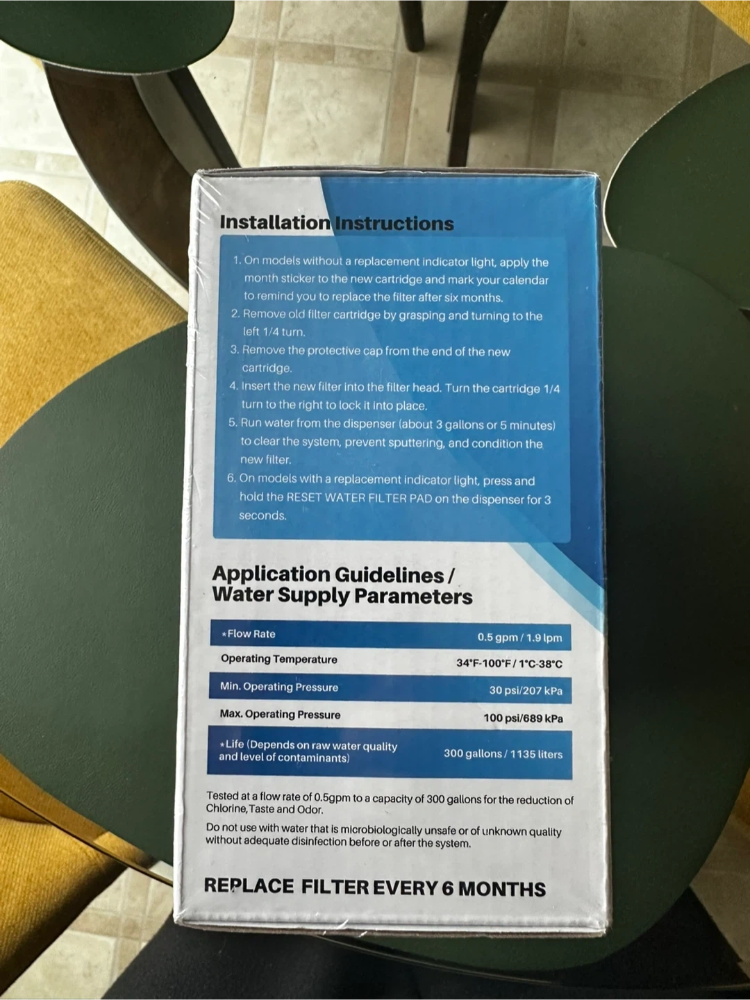 This is an ICEPURE Refrigerator Water Filter, model RWF1100A. It's certified by NSF/ANSI 42 for material safety, structural integrity, and aesthetic chlorine, taste, and odor reduction. Tested at a flow rate of 0.5gpm, it has a capacity of 300 gallons.