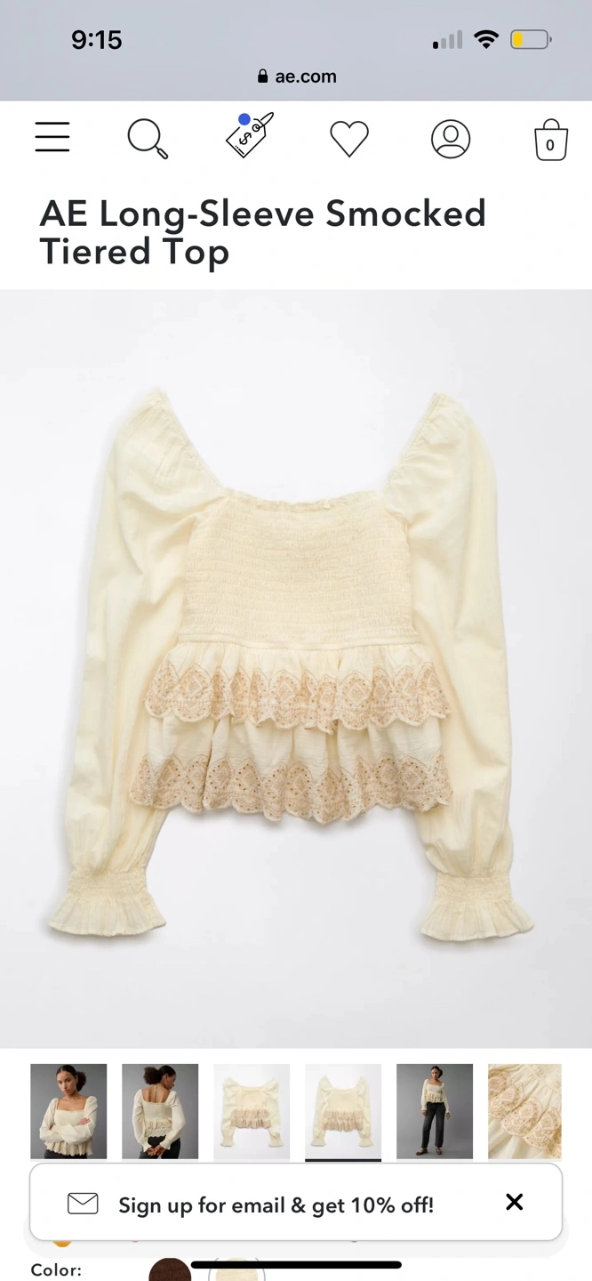 American Eagle Outfitters Long-Sleeve Smocked Tiered Top