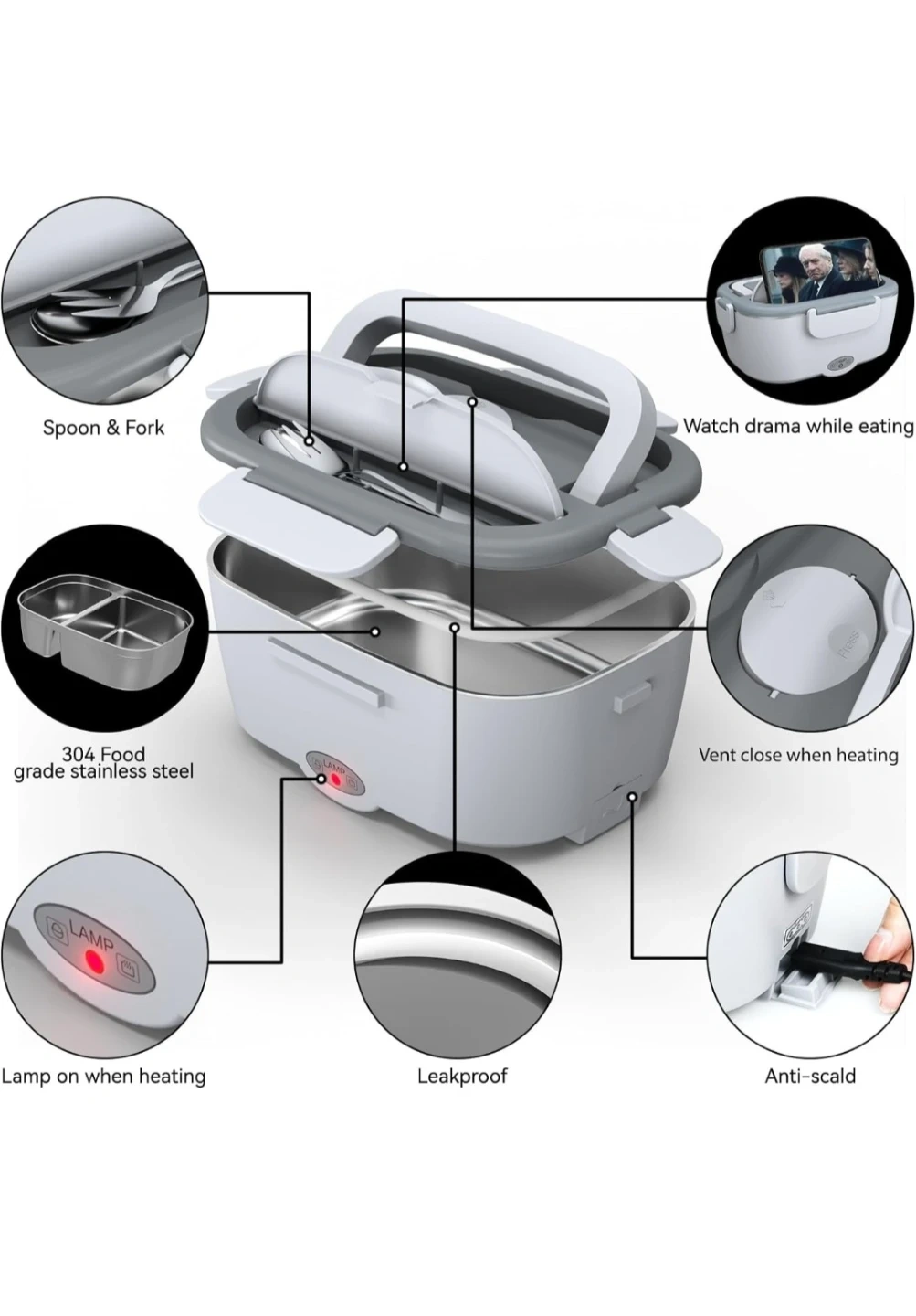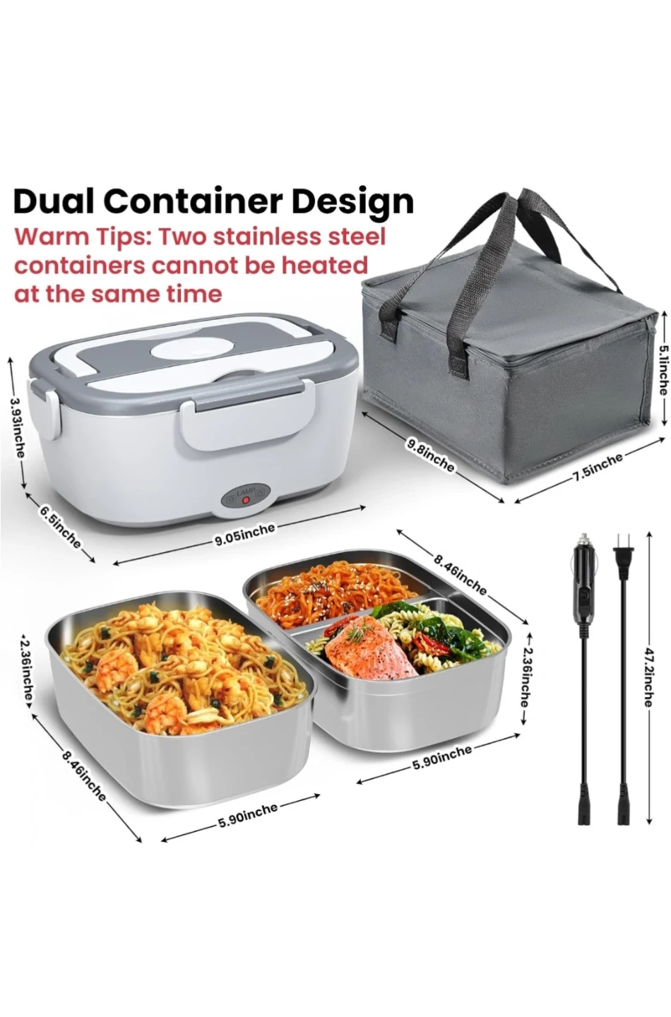 80W Electric Lunch Box with Dual Containers and Insulated Bag