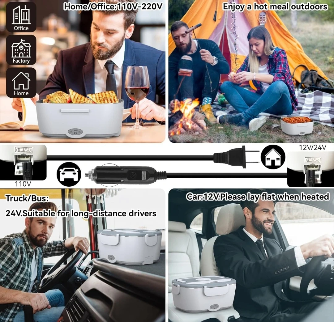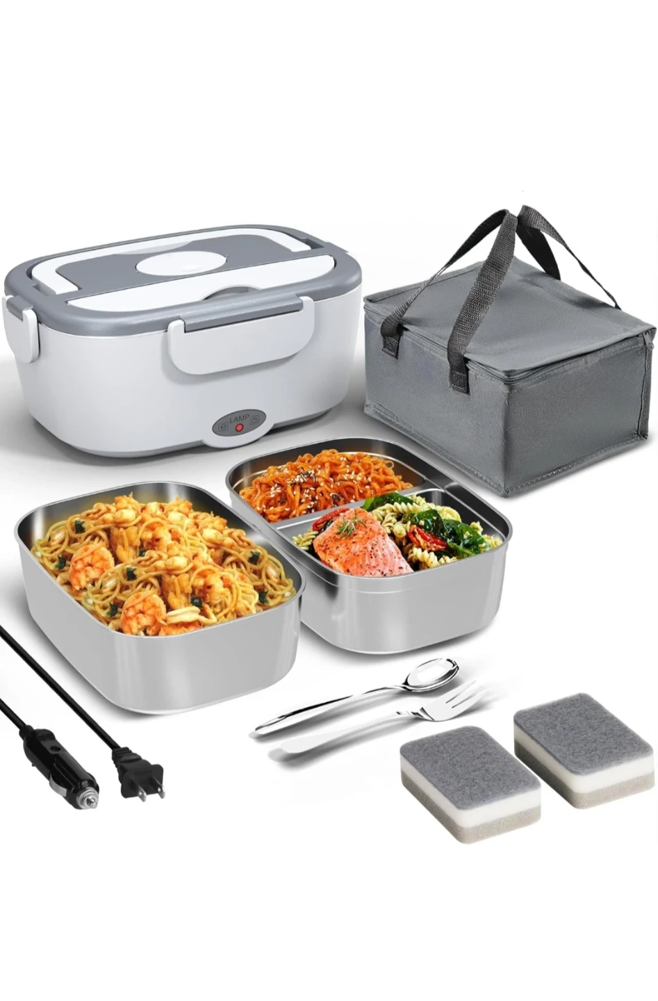 80W Electric Lunch Box with Dual Containers and Insulated Bag