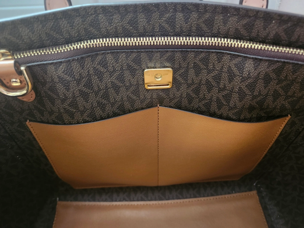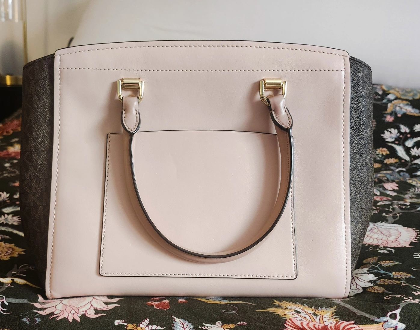 Selling a Michael Kors benning Satchel purse in a lovely pink and classic brown logo colour combination! The purse comes with the matching wallet, card holdler, cross body strap, orginal care instructions and dust bag.
