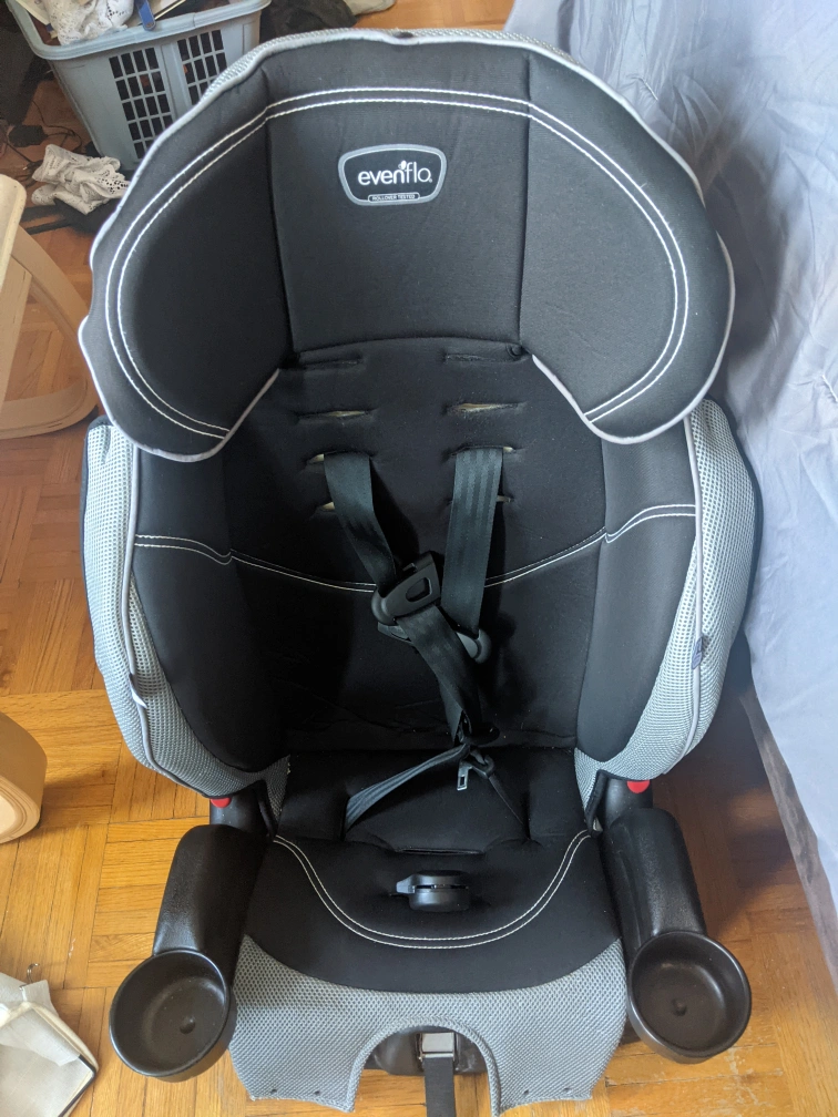 Used Everflo car seat. Grey and black. Two cup holders. Good condition. Ready for your child.Sold as is condition and never been in an accident. Doesn't expire until October 10 2025