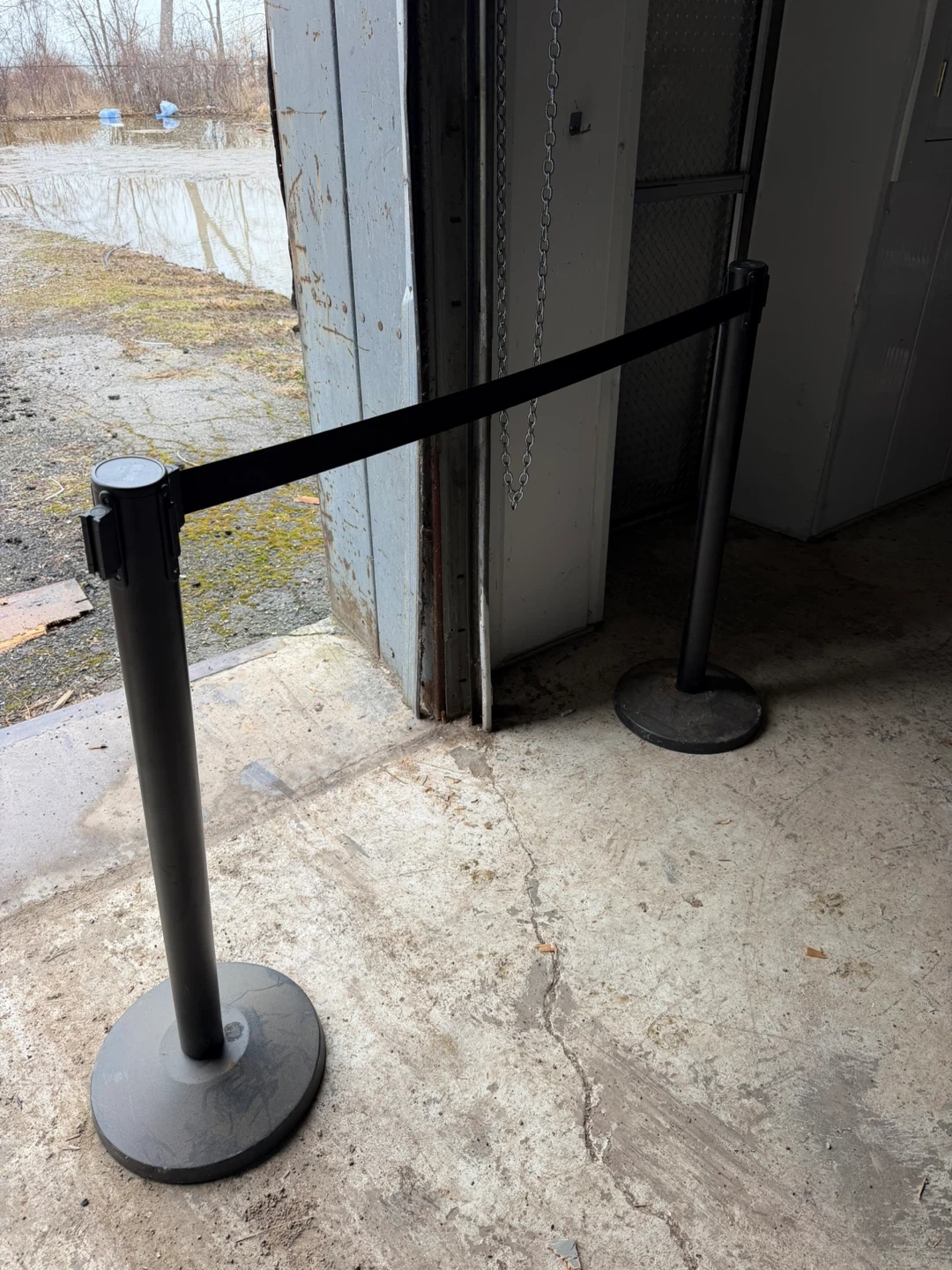 Six black Uline stanchions with retractable belts are available. These are great for crowd control in various settings. The heavy bases offer stability.