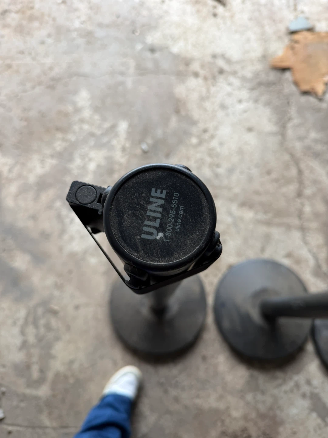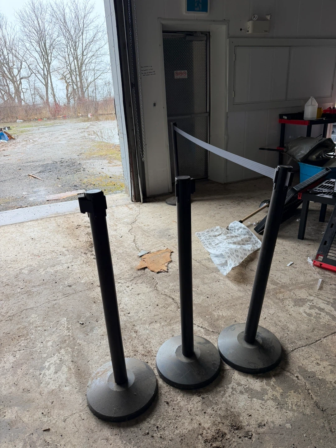 Six black Uline stanchions with retractable belts are available. These are great for crowd control in various settings. The heavy bases offer stability.
