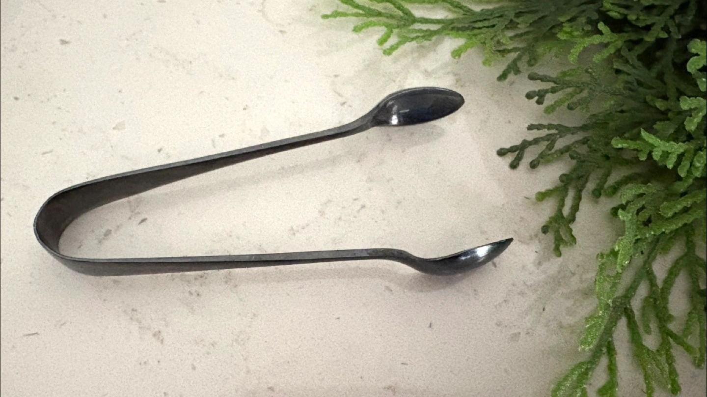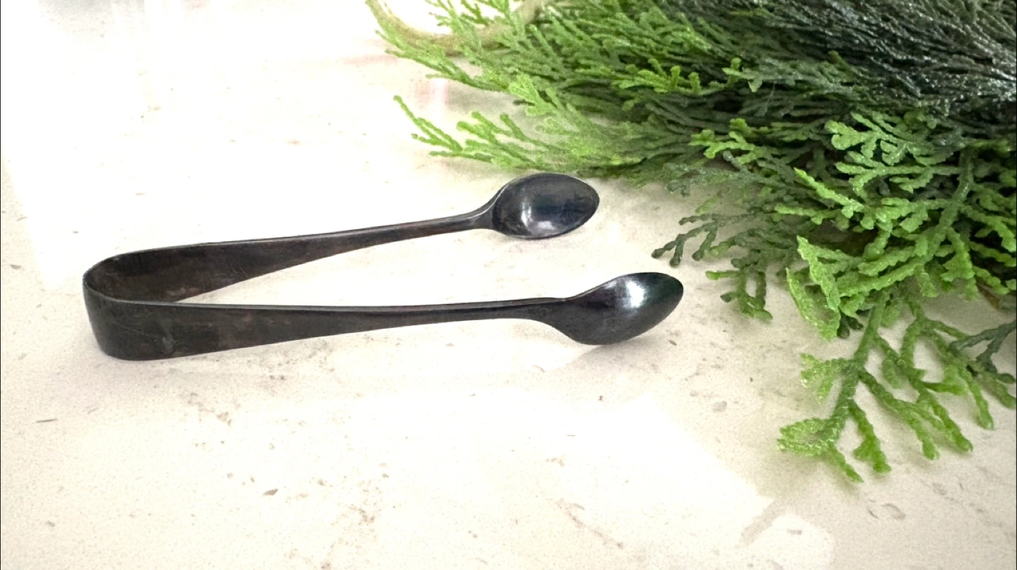 These tongs are made of EPNS, likely Sheffield silver plate.