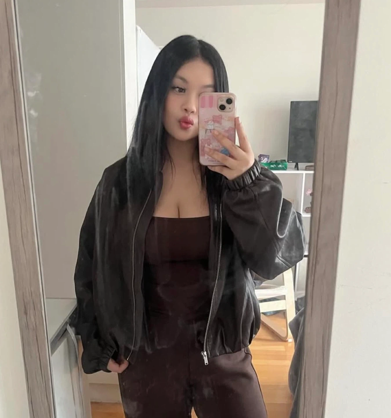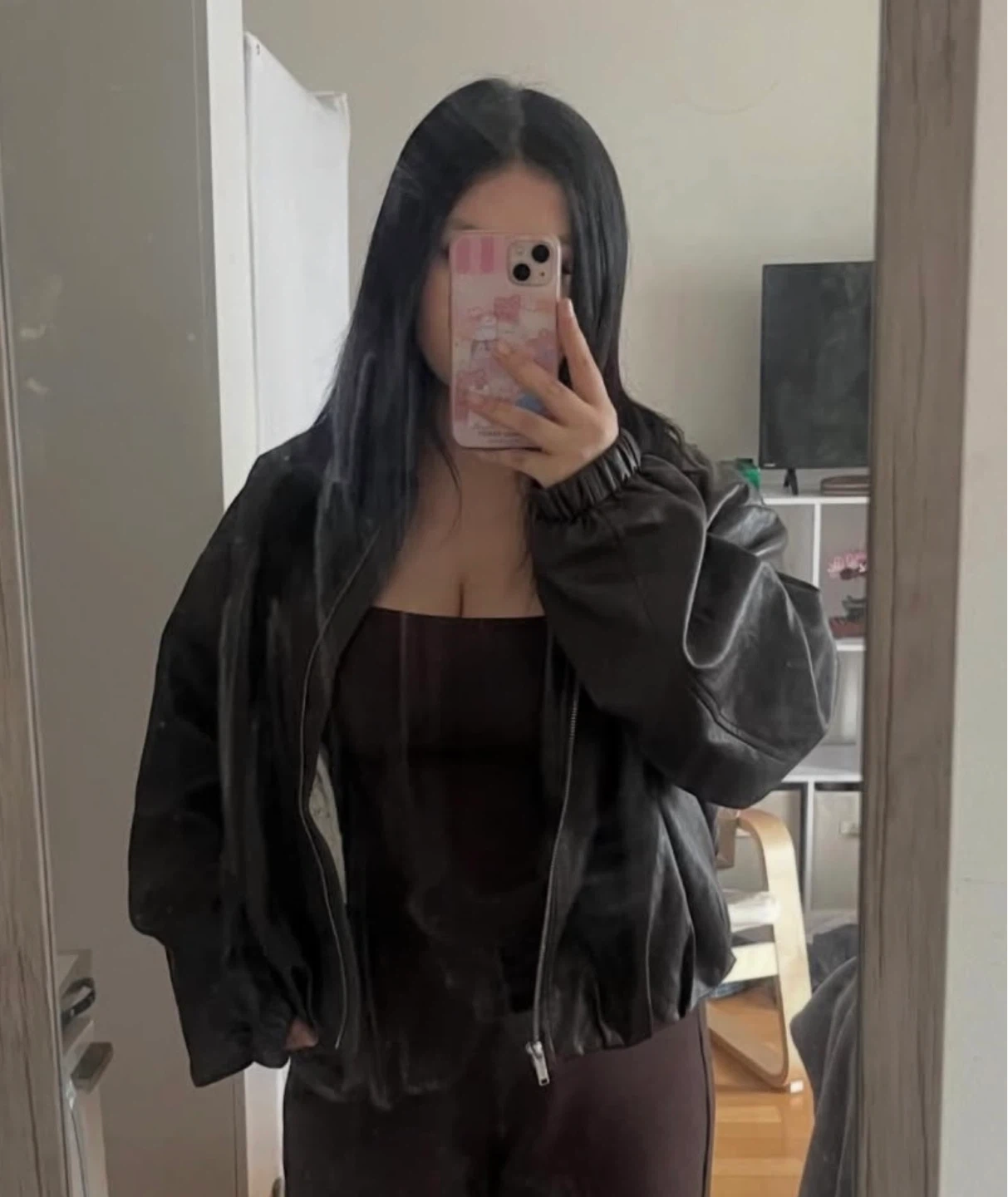 Classic brown leather jacket with a comfortable fit. Features a zip-up front and elasticized cuffs and hem. It's perfect for layering over any outfit. Only worn one. Bought for over 110+. Perfect mint condition, no stains, no scratches. Perfect for a night out for casual wear. Very trendy right now. ALSO HAS A CUTE BAGGY STYLE!