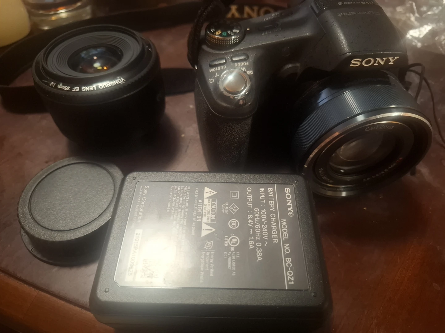 Sony Cyber-shot digital camera. Includes a Yongnuo EF 35mm 1:2 lens and battery charger model BC-QZ1. Great camera for everyday photography!
