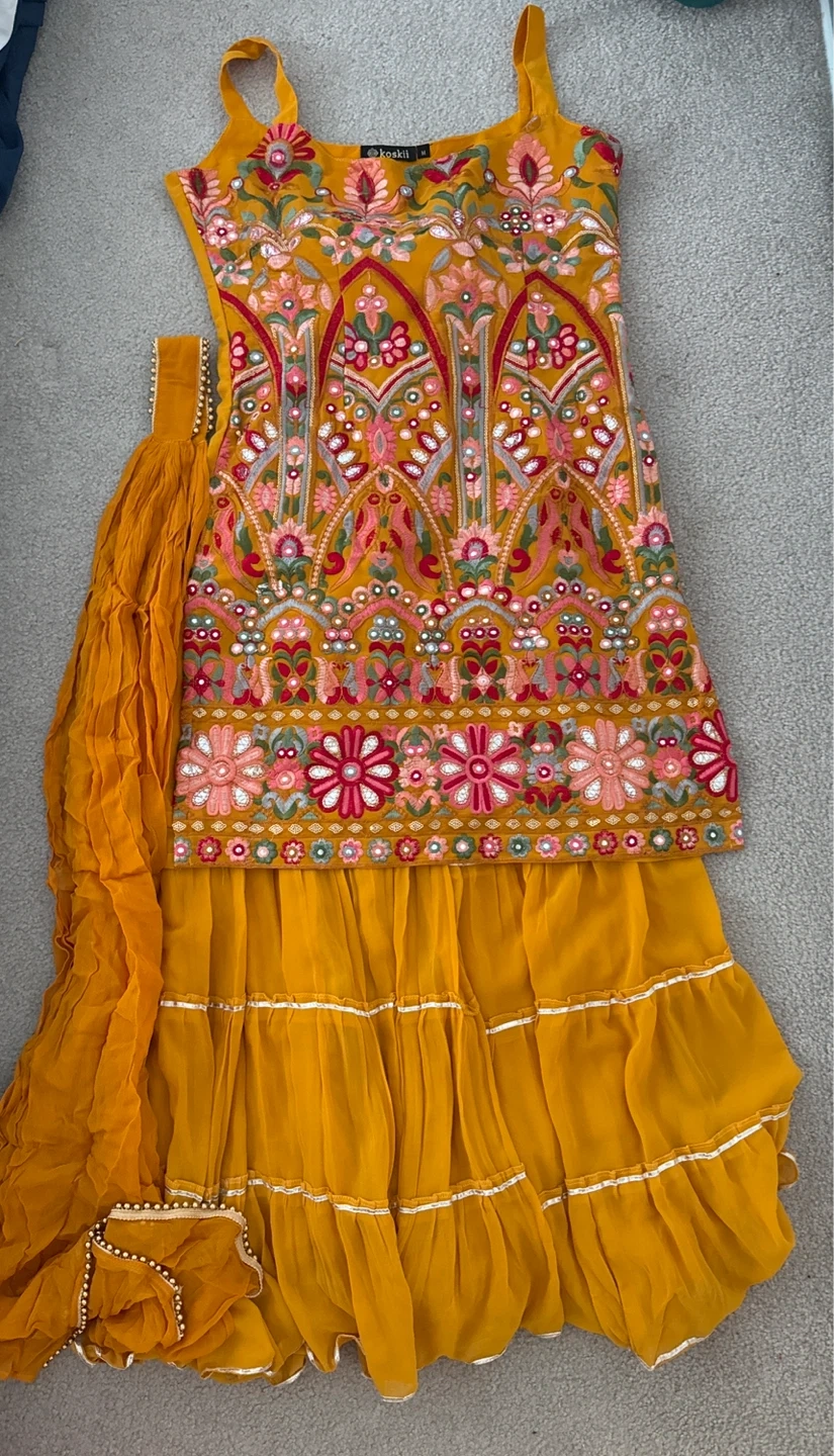 Koskil Women's Yellow Embroidered sharara suit and Dupatta