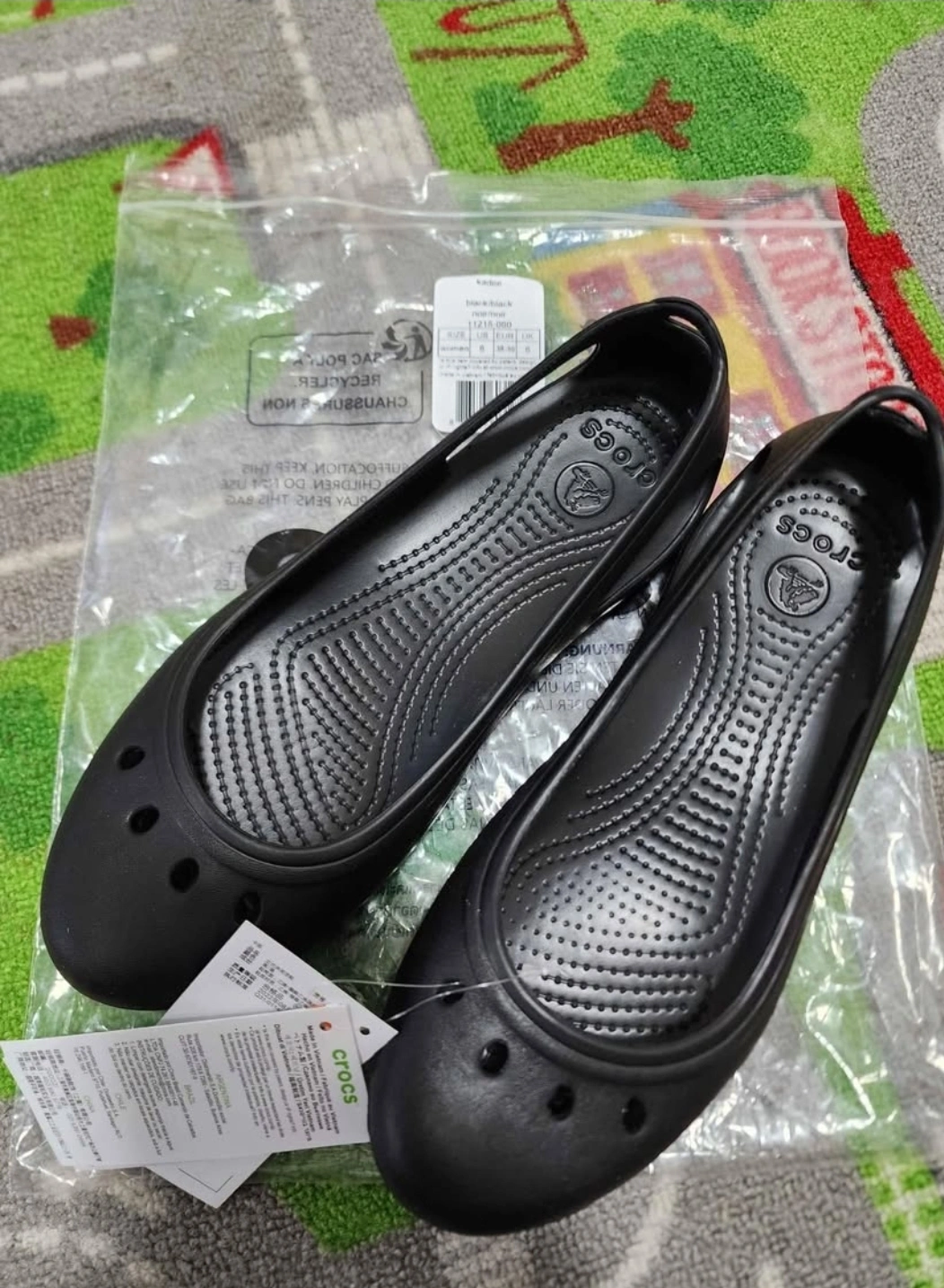 Women's black Crocs ballet flats. Size 8. New with tags. Comfortable slip-on style. Lightweight and easy to wear.