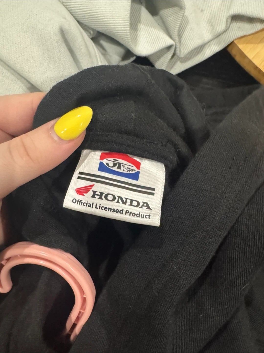 Official Honda Racing hoodie with bold Honda logo across the front and racing graphics on the sleeves. Licensed Honda merchandise produced by JT Racing USA.