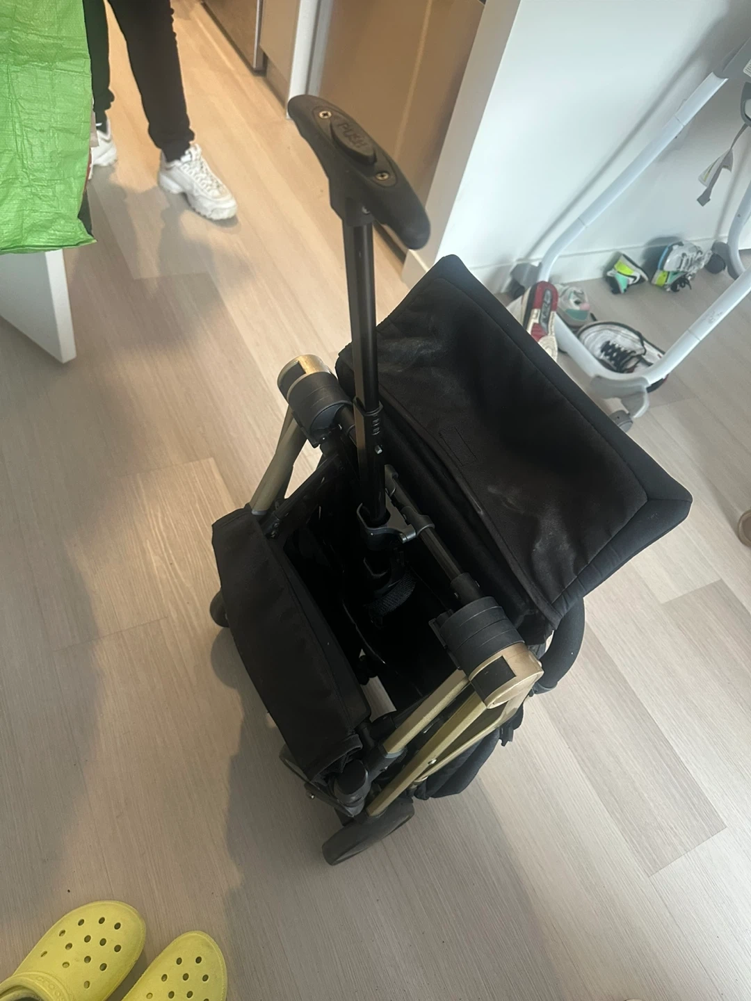 This Diono Traverze is a compact travel stroller in Black Gold. It's freestanding and measures 23.6" in height and 16.3" in width. Includes a travel bag for protection.